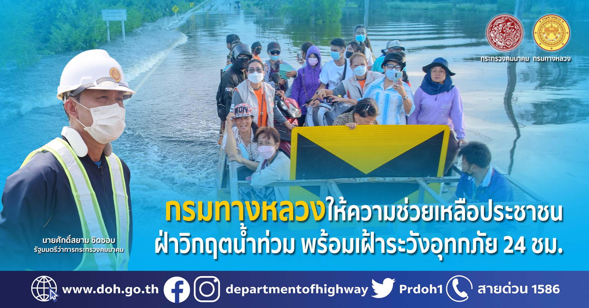 กรมทางหลวง ให้ความช่วยเหลือประชาชนฝ่าวิกฤตน้ำท่วม พร้อมเฝ้าระวังอุทกภัย 24 ชม.