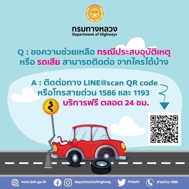 กรมทางหลวง อำนวยความสะดวกและปลอดภัยช่วงเทศกาลปีใหม่ 2565 พร้อมเปิดบริการช่วยเหลือฉุกเฉินผ่านไลน์ตลอด 24 ชม. เพื่อรองรับการเดินทางของประชาชน