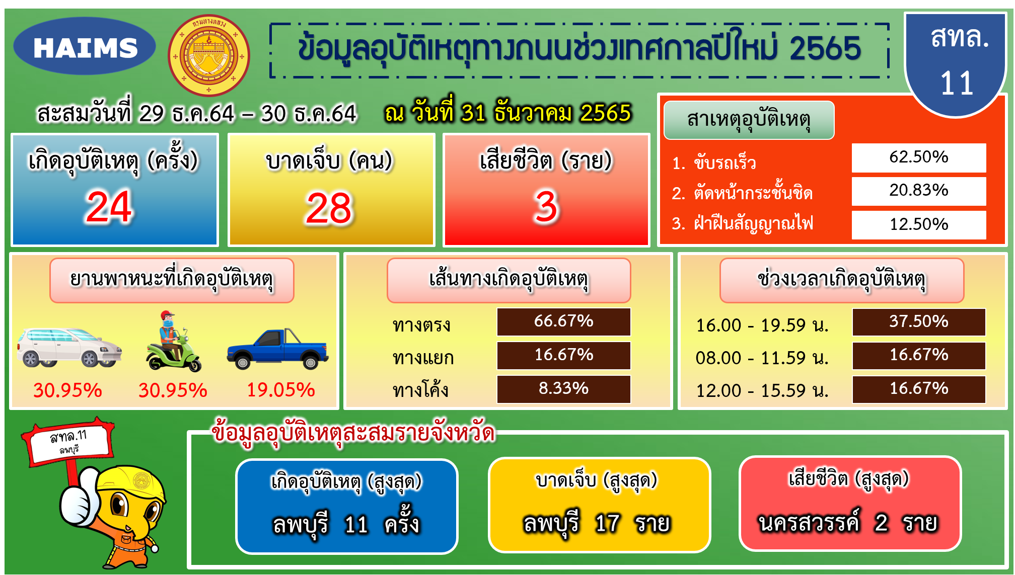 ข้อมูลข่าว : สถิติอุบัติเหตุช่วงเทศกาลปีใหม่ 2565