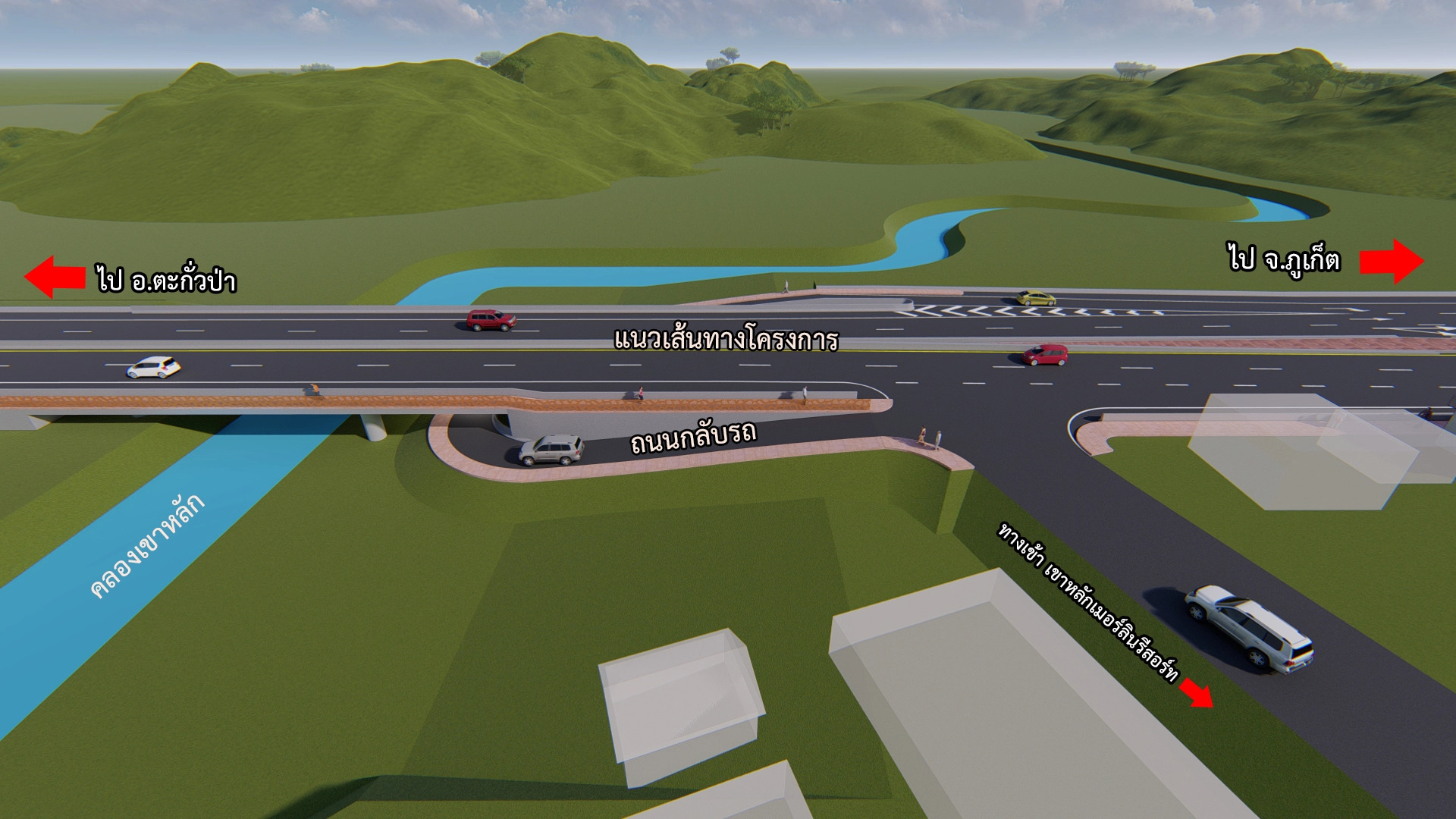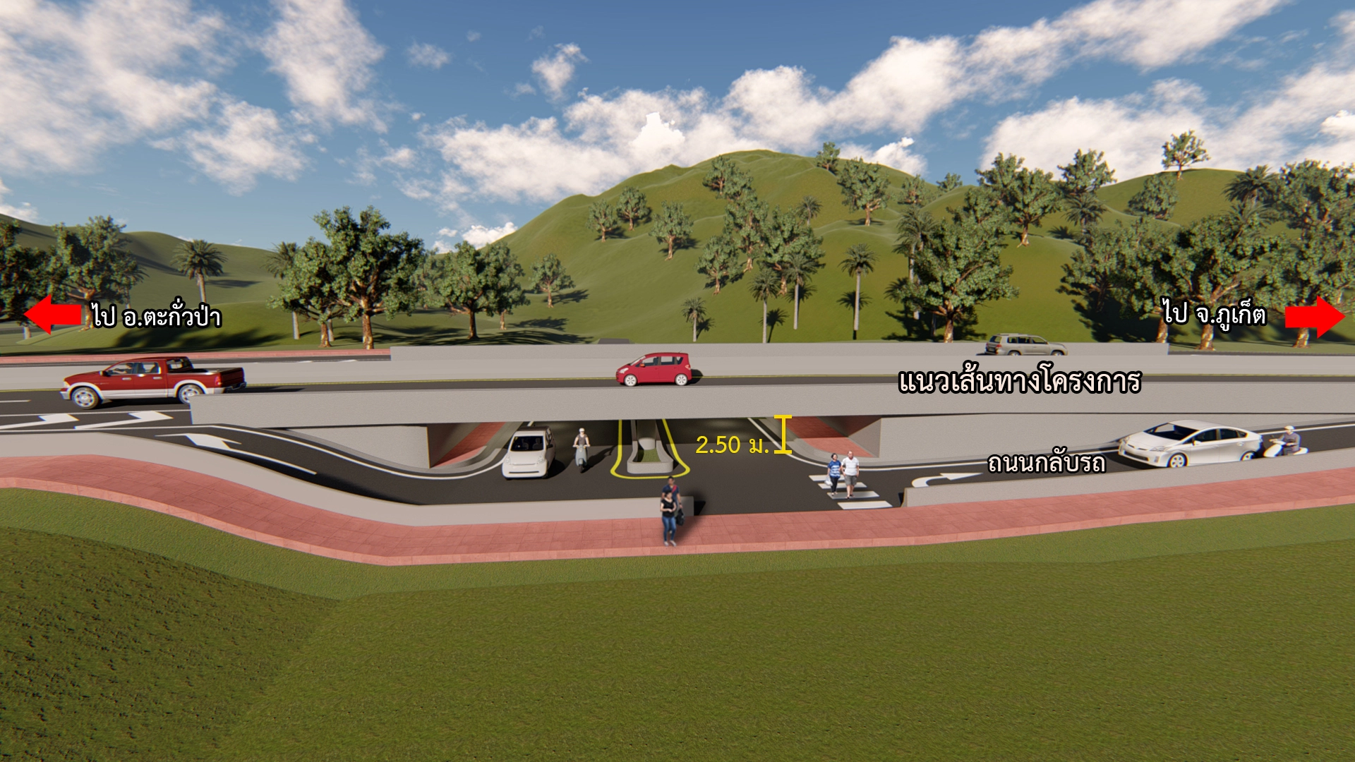 3. รูปแบบจุดกลับรถใต้สะพานข้าม กม.801+599.000 คลองเขาหลัก ความสูงช่องลอด 2 เมตร นอกจากนี้บริเวณบ้านบางหลาโอนได้ออกแบบทางลอดคนเดินให้นักท่องเที่ยว