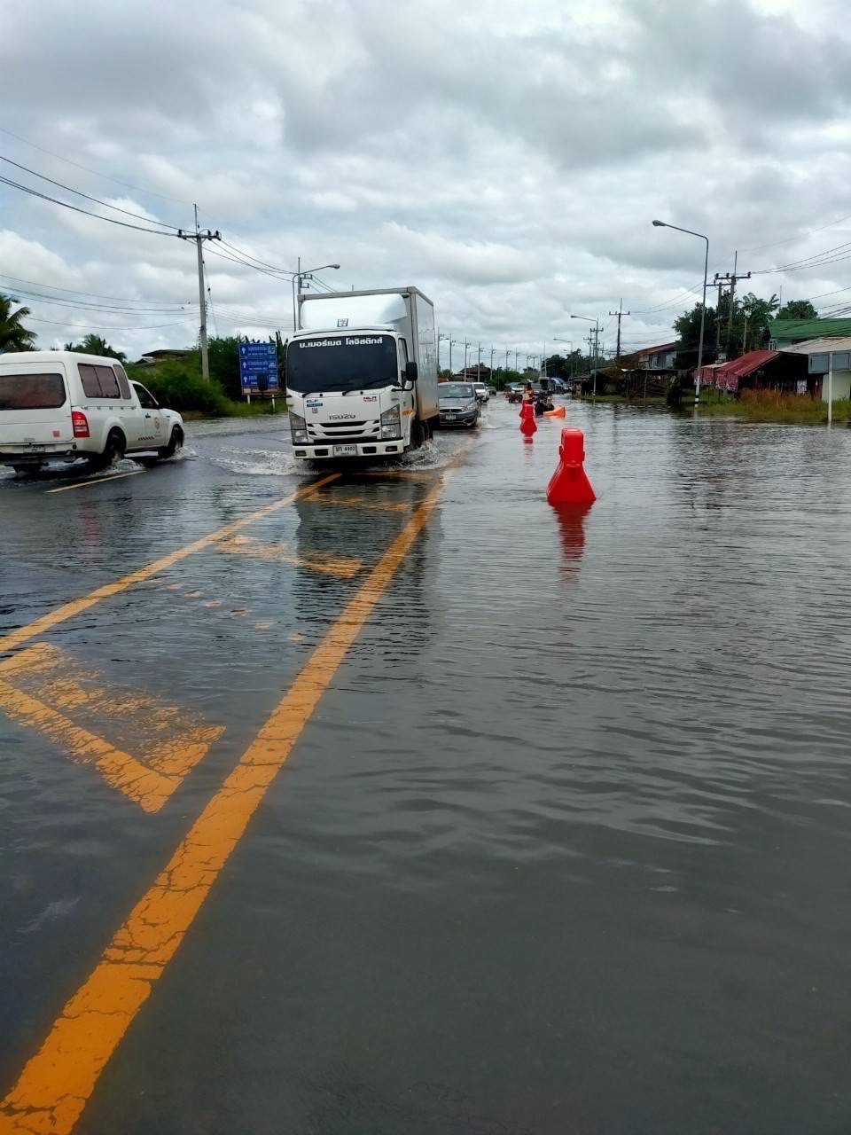 - ทางหลวงหมายเลข 226 ตอน ห้วยขะยุง – วารินชำราบ ในพื้นที่ อ.วารินชำราบ ช่วง กม.ที่ 319+600 – 319+800 ระดับน้ำ 120 ซม.