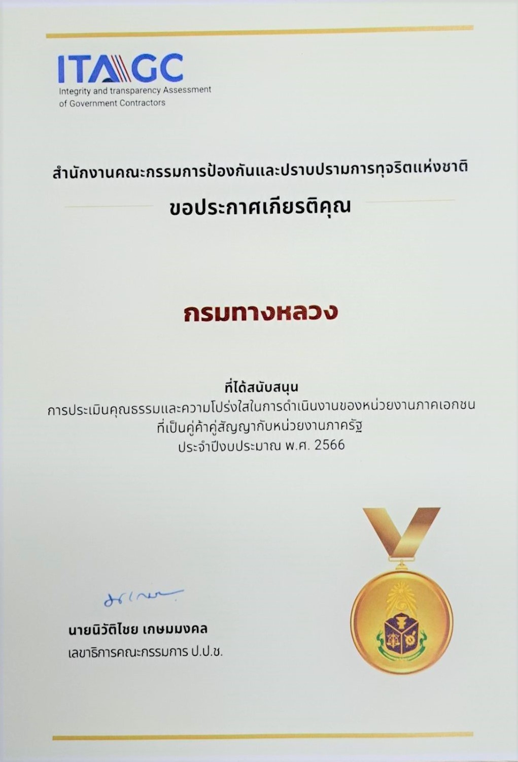 ประชาสัมพันธ์เกียรติบัตรการสนับสนุนการประเมินคุณธรรมและความโปร่งใสในการดำเนินงานของหน่วยงานภาคเอกชน ที่เป็นคู่ค้าสัญญากับหน่วยงาน (ITAGC) ประจำปีงบประมาณ พ.ศ.2566