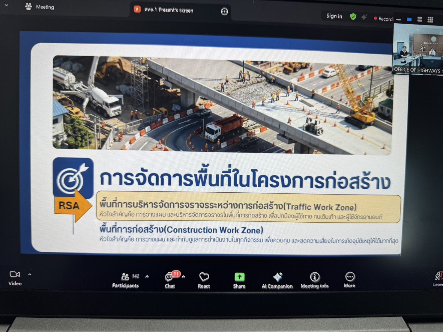 นายสุทธิเกียรติ สุขเสริม ผู้อำนวยการแขวงทางหลวงลพบุรีที่ 1 พร้อมคณะผู้บริหาร และเจ้าหน้าที่แขวงทางหลวงลพบุรีที่ 1 เข้าร่วมประชุมประจำเดือน ครั้งที่ 5/2569 ของสำนักงานทางหลวงที่ 11 ผ่านระบบ Zoom Cloud Meeting