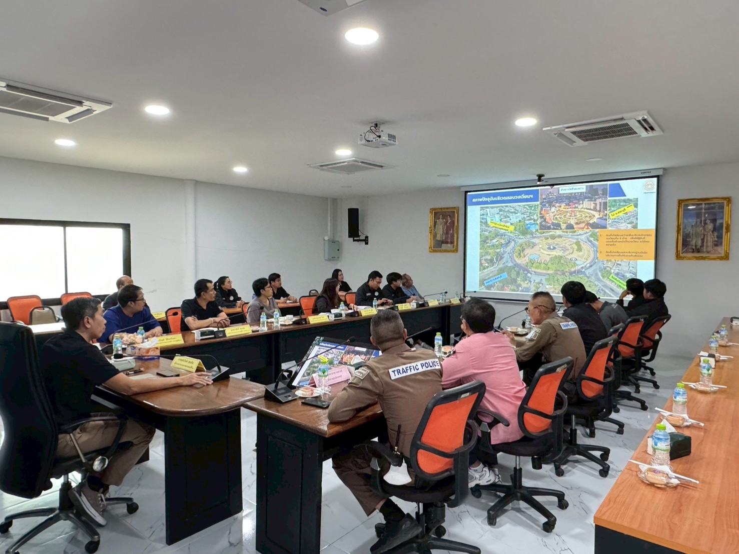 นายสุทธิเกียรติ สุขเสริม ผู้อำนวยการแขวงทางหลวงลพบุรีที่ 1 พร้อมคณะ ผู้บริหารและเจ้าหน้าที่เกี่ยวข้อง เข้าร่วมประชุมเพื่อแก้ไขจุดเสี่ยงอุบัติเหตุทางถนนบริเวณ วงเวียนเทพสตรี (วงเวียนพระนารายณ์) จังหวัดลพบุรี