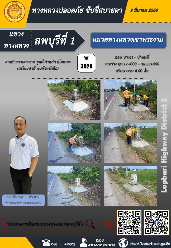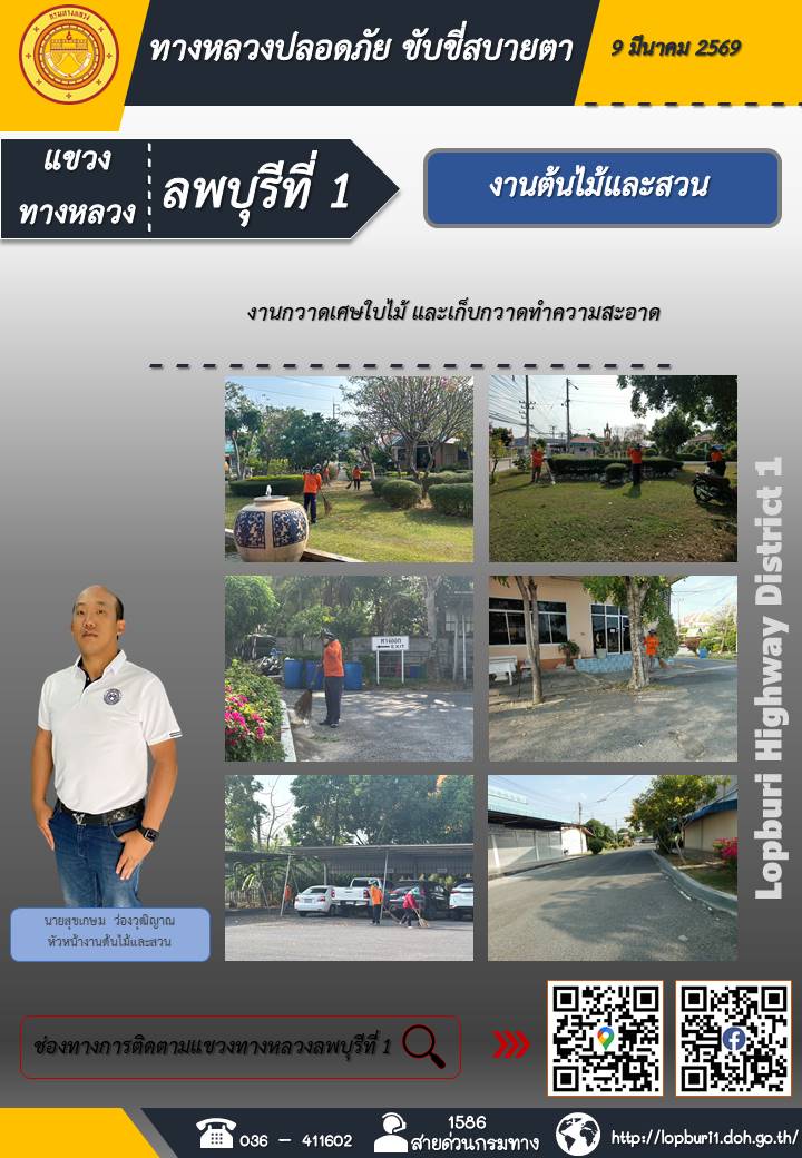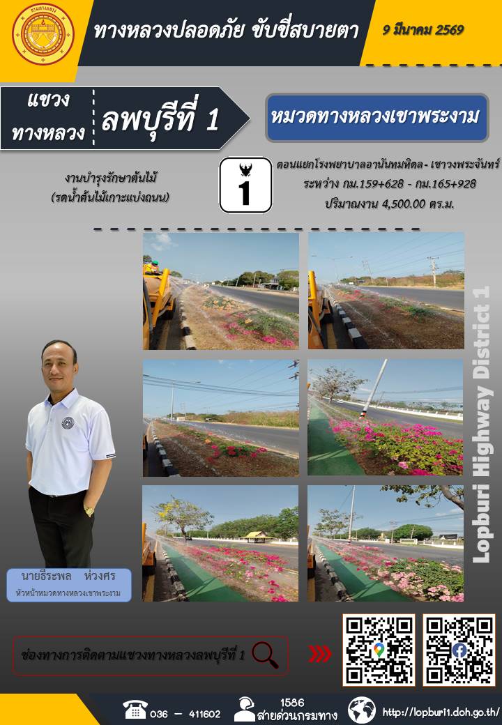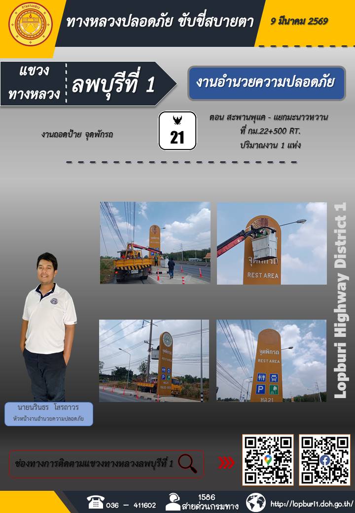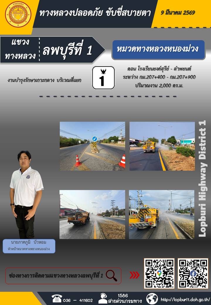 ทางหลวงปลอดภัยขับขี่สบายตา แขวงทางหลวงลพบุรีที่ 1 ประจำวันที่ 9 มีนาคม 2569