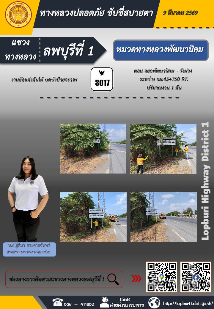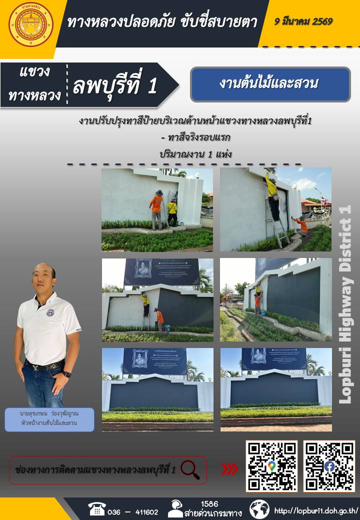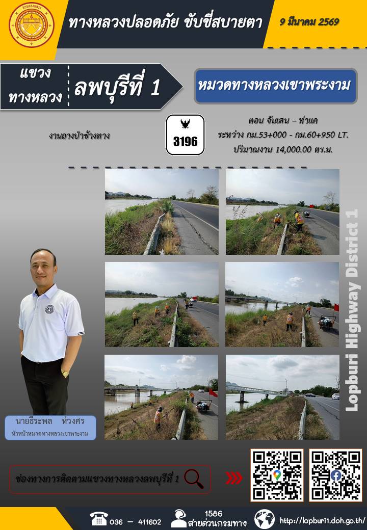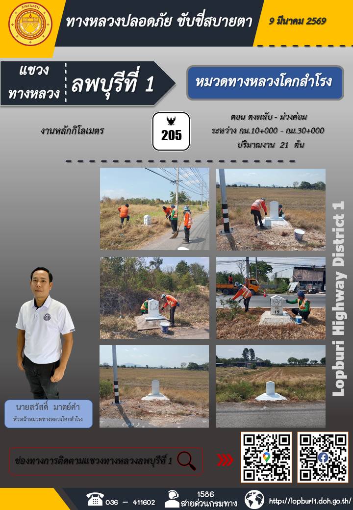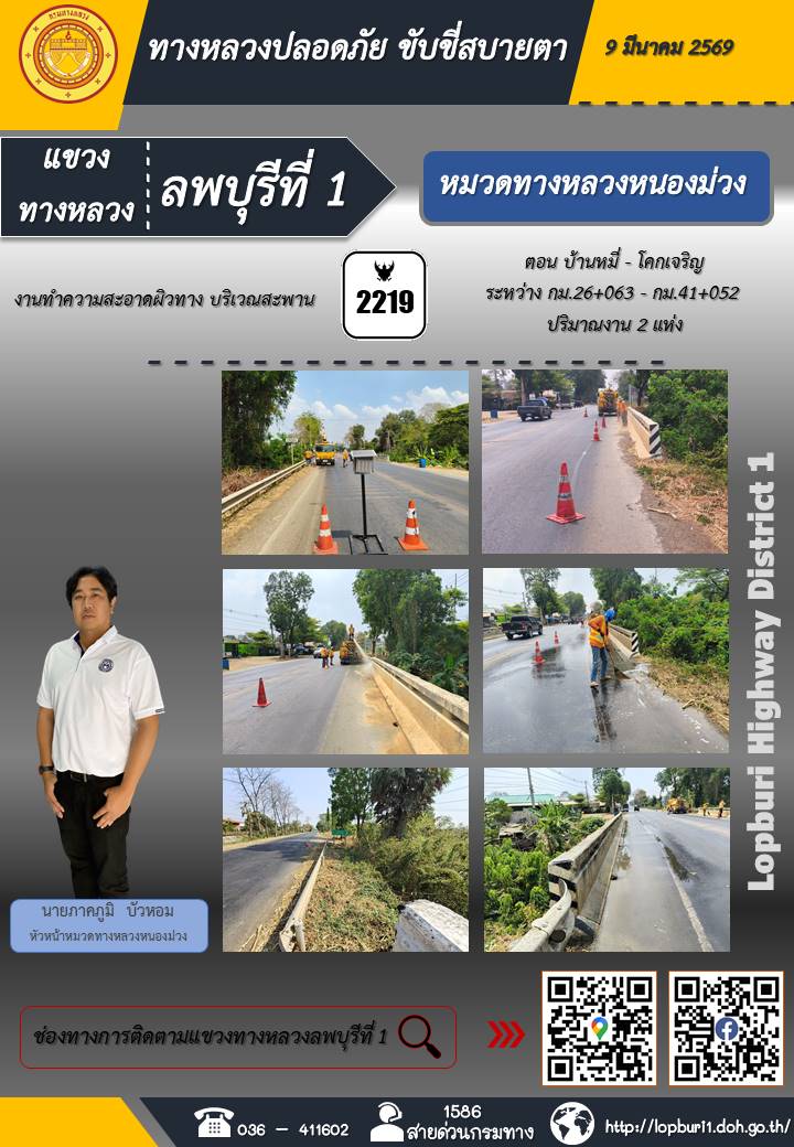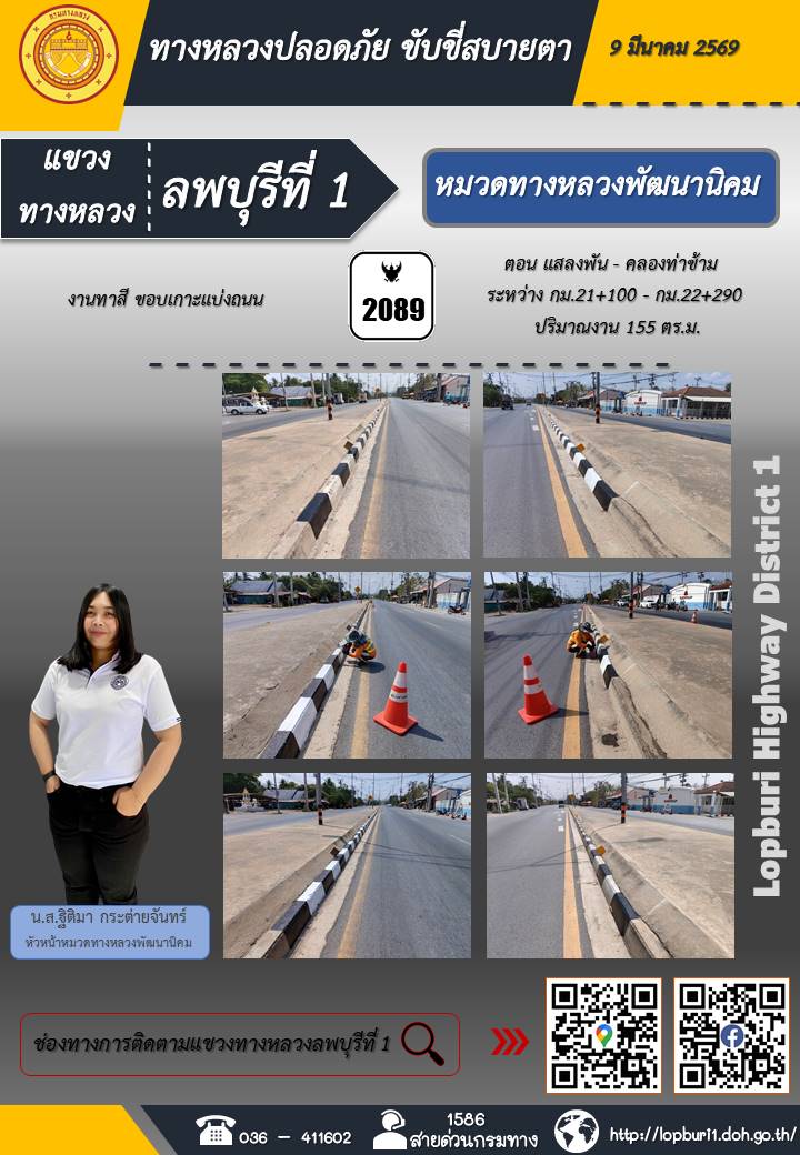 ทางหลวงปลอดภัยขับขี่สบายตา แขวงทางหลวงลพบุรีที่ 1 ประจำวันที่ 9 มีนาคม 2569