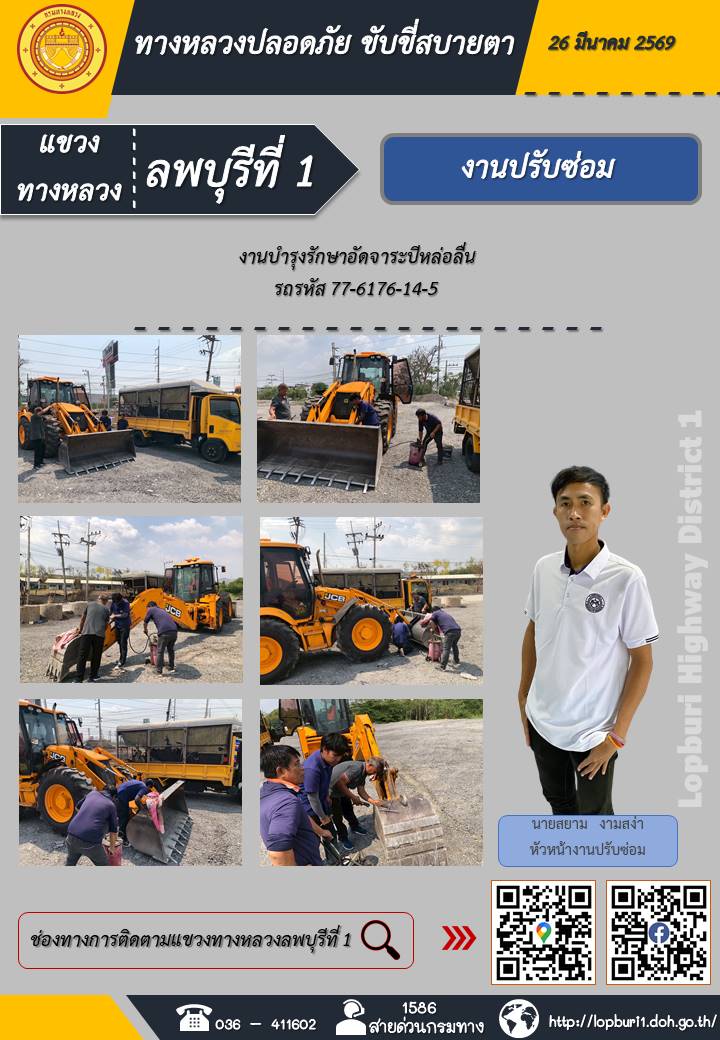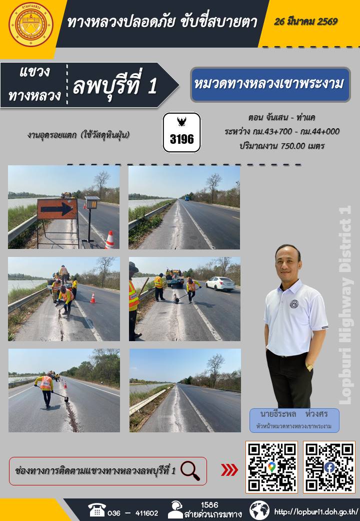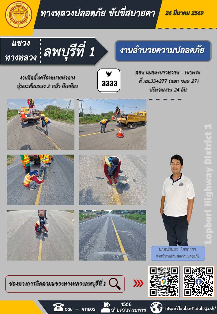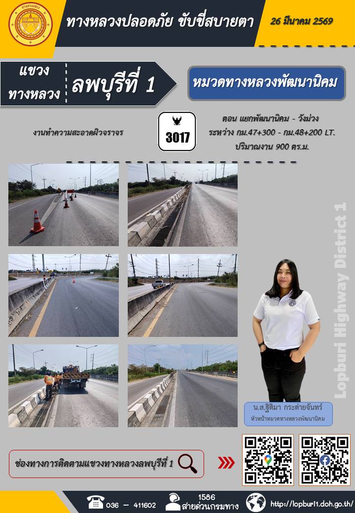 ทางหลวงปลอดภัยขับขี่สบายตา แขวงทางหลวงลพบุรีที่ 1 ประจำวันที่ 26 มีนาคม 2569