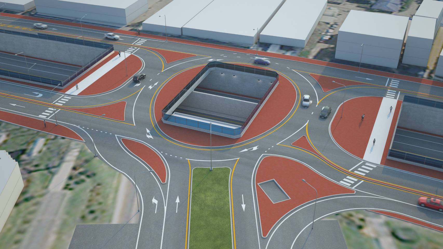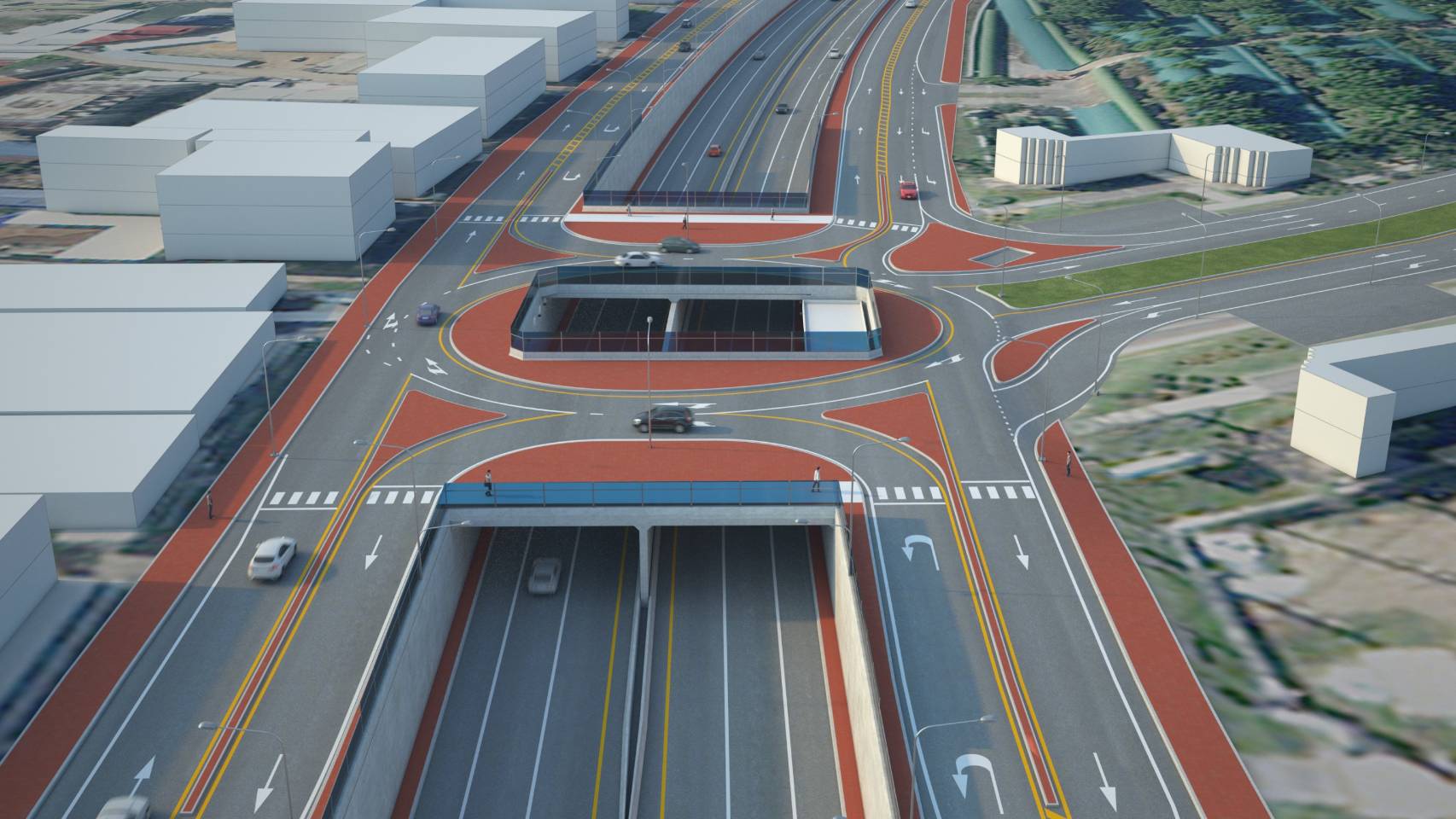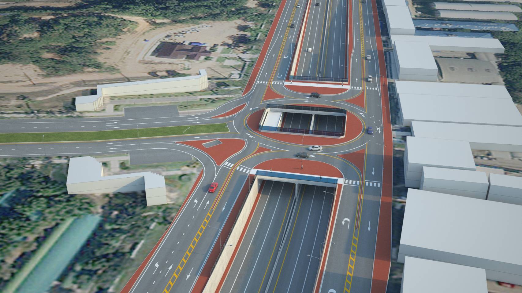 สำหรับการเชื่อมต่อระหว่างทางเข้าหน้ามหาวิทยาลัยและชุมชนฝั่งตรงข้ามจะใช้วงเวียนในการเปลี่ยนทิศทางการจราจร เพื่อระบายรถเข้าสู่ถนนคู่ขนาน โดยออกแบบวงเวียนขนาด 1 ช่องจราจร กว้าง 4 เมตร ไหล่ทางด้านในกว้าง 1 เมตร ไหล่ทางด้านนอกกว้าง 2 เมตร รวมความกว้าง 7 เมตร พร้อมทั้งปรับปรุงทางคู่ขนานทั้ง 2 ฝั่งตลอดแนวทางลอดให้รถสามารถวิ่งสวนทางกันได้ และเมื่อนำมาเชื่อมต่อกับระบบวงเวียนจึงทำให้การจราจรทั้งสองฝั่งสามารถเดินทางถึงกันได้อย่างปลอดภัย งบประมาณก่อสร้าง 420 ล้านบาท ปัจจุบันโครงการดังกล่าวอยู่ในระหว่างการเสนอของบประมาณก่อสร้างปีงบประมาณ พ.ศ.2565 หากได้รับการจัดสรรงบประมาณ คาดว่าจะเริ่มก่อสร้างได้ประมาณต้นปี พ.ศ. 2565
