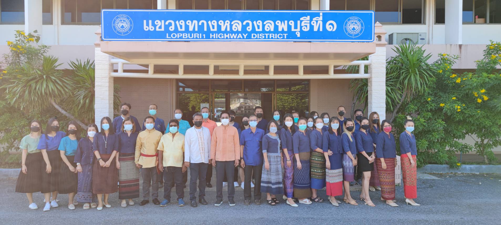 วันศุกร์ที่ 19 พฤศจิกายน 2564 นายโกเมศ มัชฌิมา ผู้อำนวยการแขวงทางหลวงลพบุรีที่ 1 พร้อมด้วยเจ้าหน้าที่ในสังกัด ร่วมแต่งกายสวมใส่ชุดผ้าไทยมาทำงาน ตามมาตรการของกรมทางหลวง เพื่ออนุรักษ์และสืบสาน ภูมิปัญญาของคนไทย ตามความเหมาะสมของท้องถิ่น ซึ่งเป็นมาตรการตามนโยบายของรัฐบาล ในการส่งเสริม ให้ข้าราชการ ประชาชน แต่งกายด้วยผ้าไทยเพิ่มขึ้น