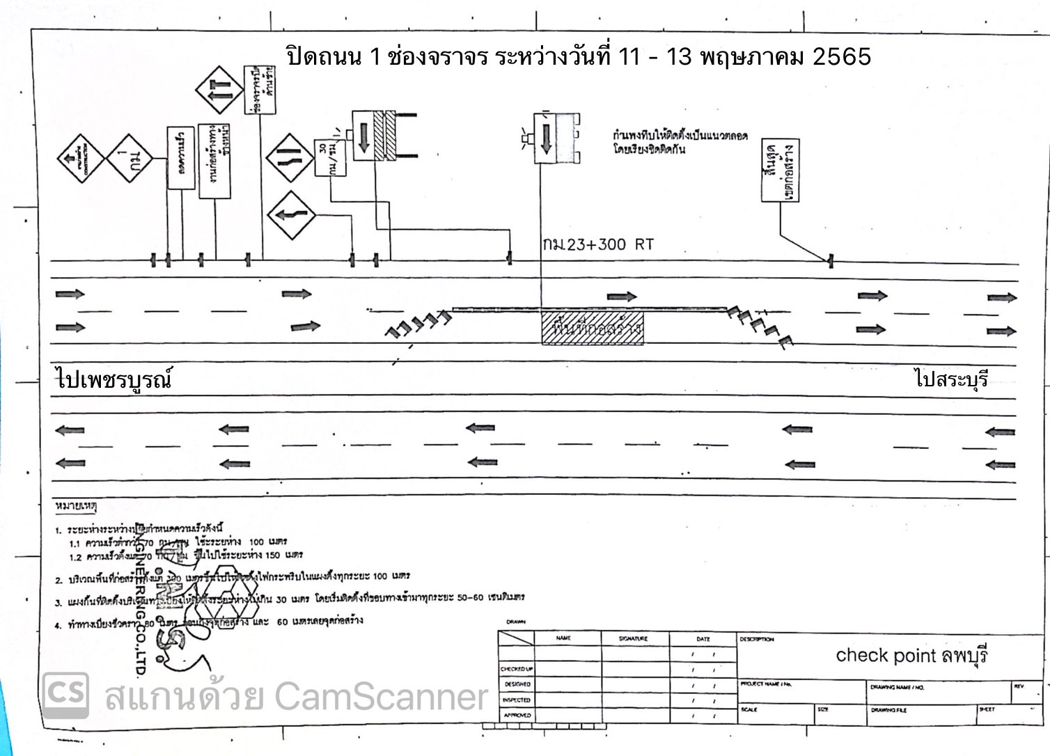 ประชาสัมพันธ์งานก่อสร้าง และปิดการจราจรช่องเลนซ้ายทางและเลนขวาทาง บนทางหลวงหมายเลข 21 ตอนสะพานพุแค - แยกมะนาวหวาน ที่ กม.21+700 LT และที่กม.23+300 RT ตั้งแต่วันที่ 2 - 13 พฤษภาคม 2565 ระยะเวลาทำการ 180 วัน เพื่อประชาสัมพันธ์ให้ประชาชนผู้ใช้ส้นทางและผู้ที่เกี่ยวข้องได้ทราบ เพื่อหลีกเลี่ยงการใช้เส้นทางดังกล่าว