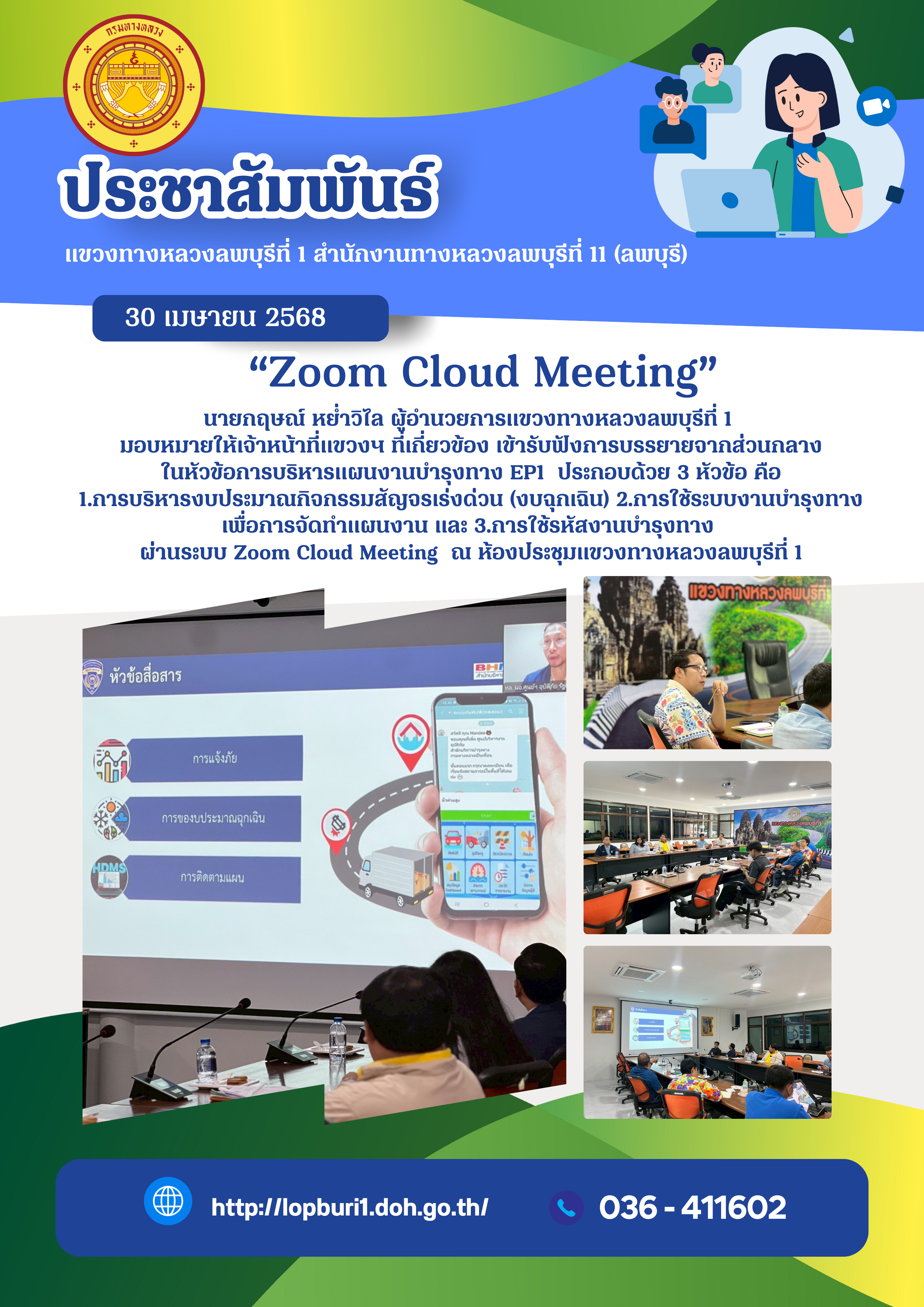 3.การใช้รหัสงานบำรุงทาง ผ่านระบบ Zoom Cloud Meeting ณ ห้องประชุมแขวงทางหลวงลพบุรีที่ 1
