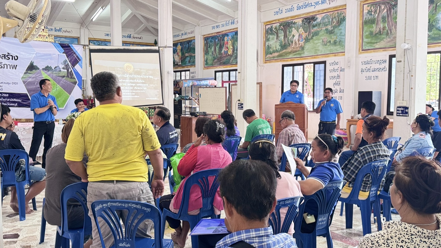 และประชาชนที่อาศัยอยู่ในบริเวณสองข้างทาง ณ ศาลาอเนกประสงค์วัดถ้ำเต่าสามัคคีธรรม ตำบลโคกตูม อำเภอเมือง จังหวัดลพบุรี