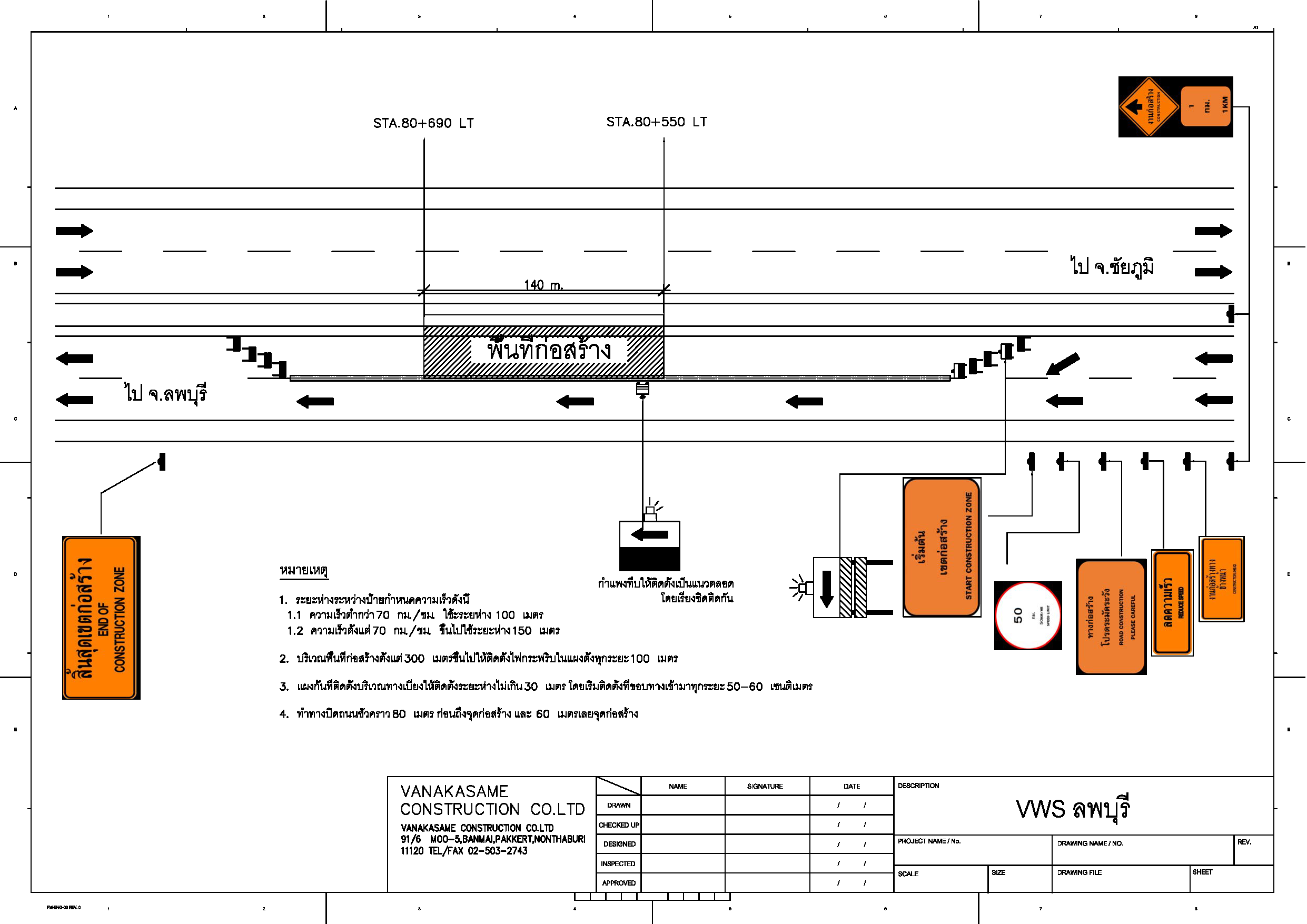 **ปิดช่องจราจรเลนขวา + ไหล่ทางขวา ที่ กม.80+550 - กม.80+690 ด้านซ้ายทาง กว้าง 4 เมตร ระยะเวลา 30 วัน ตั้งแต่วันที่ 15 กุมภาพันธ์ 2568 – 16 มีนาคม 2568