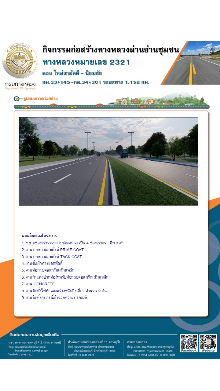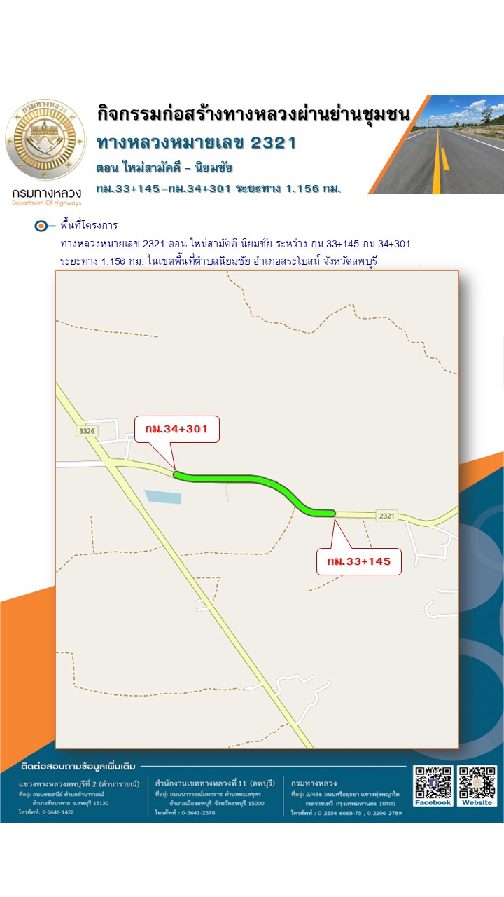 ประชาสัมพันธ์เชิญเข้าร่วมประชุมรับฟังความคิดเห็นของประชาชนโครงการก่อสร้างโครงข่ายทางหลวงแผ่นดิน กิจกรรมก่อสร้างทางหลวงผ่านชุมชนเพื่อคนทุกกลุ่ม งานพัฒนาทางหลวงผ่านย่านชุมชน ทางหลวงหมายเลข 2321 ตอน ใหม่สามัคคี – นิยมชัย ระหว่าง กม.33+145 – กม.34+301 ระยะทาง 1.156 กิโลเมตร