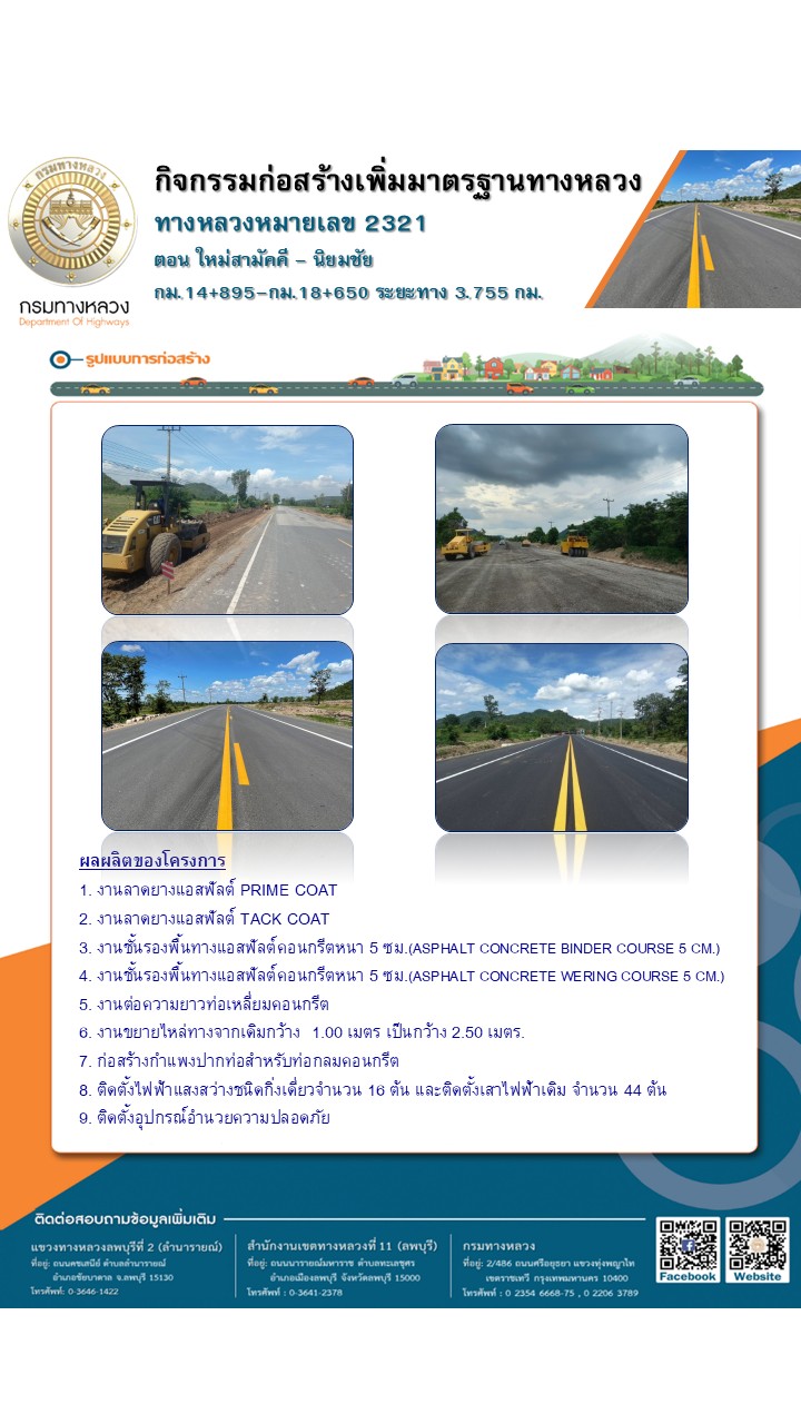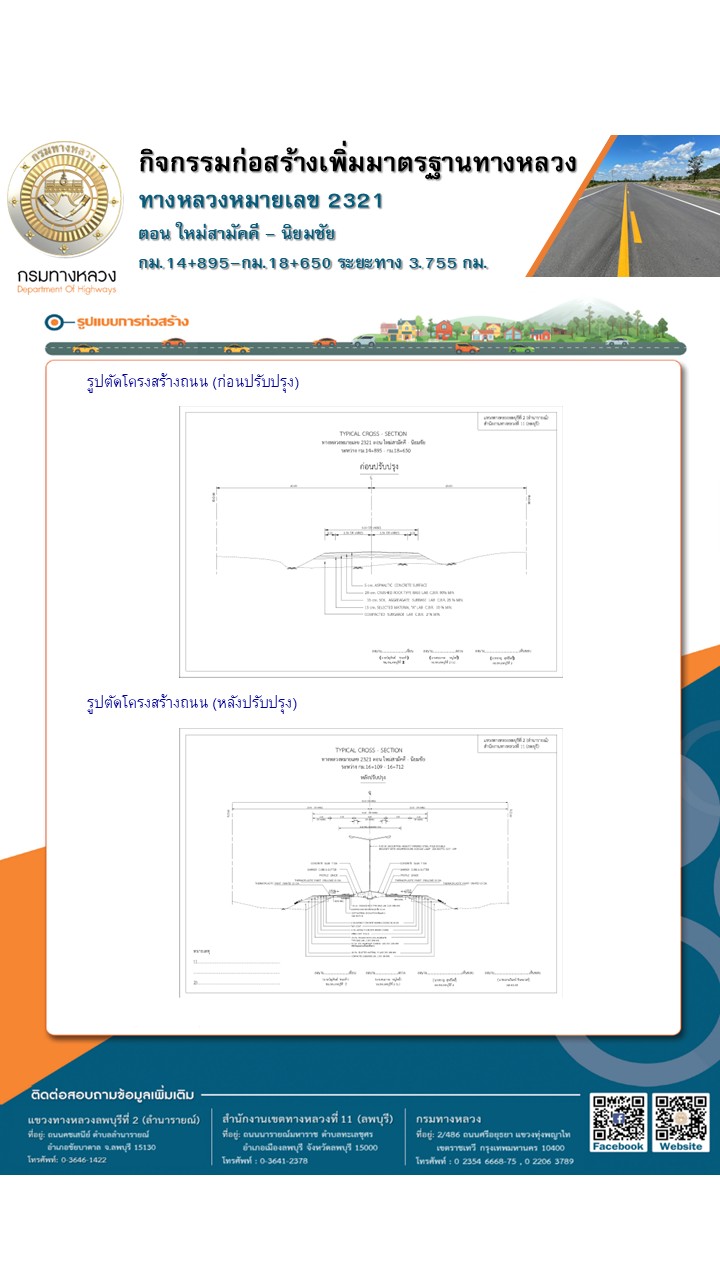 โดยปรับปรุงผิวจราจรและขยายไหล่ทางจากความกว้างเดิม 1.00 เมตร