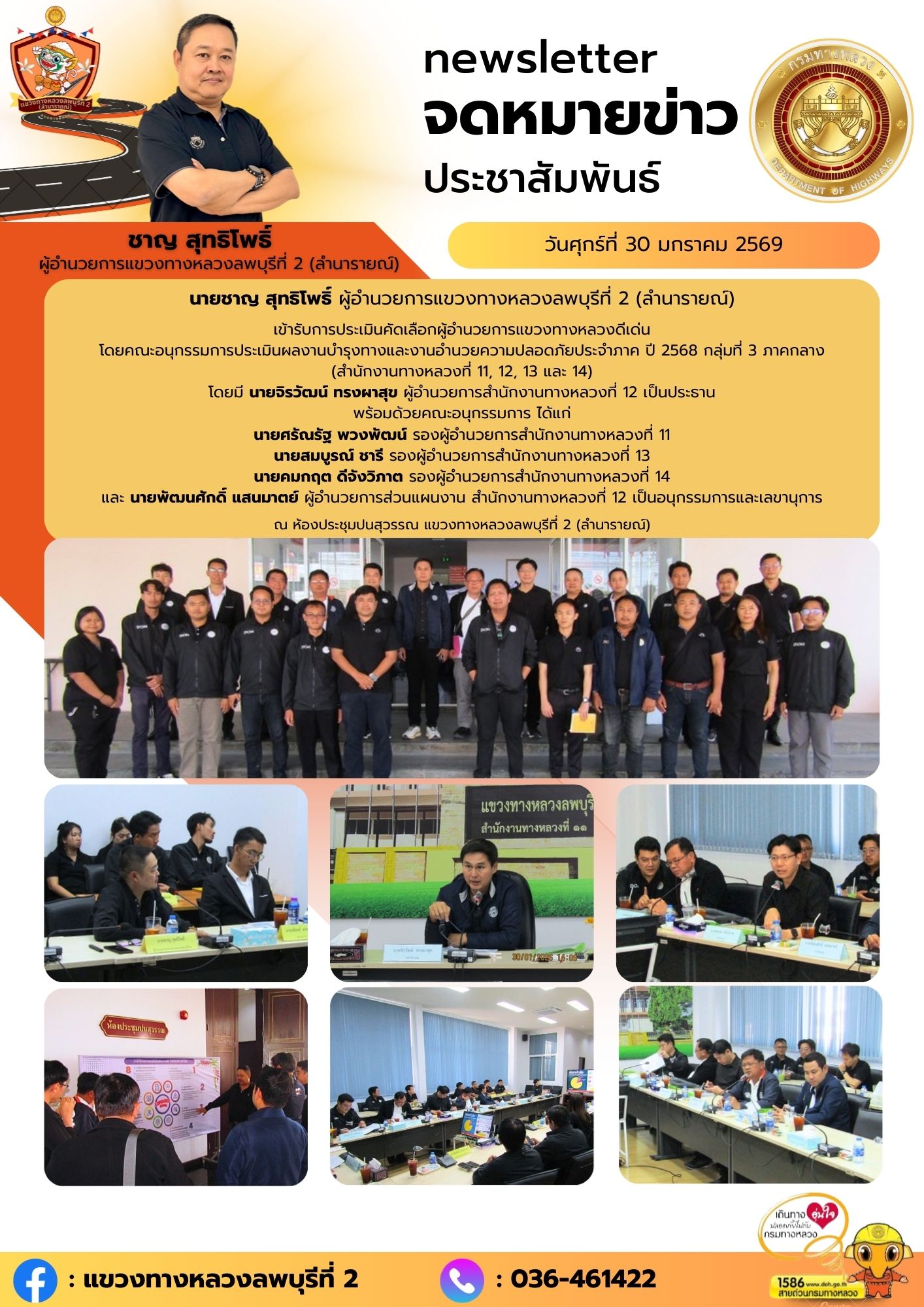 นายชาญ สุทธิโพธิ์ ผู้อำนวยการแขวงทางหลวงลพบุรีที่ 2 (ลำนารายณ์) เข้ารับการประเมินคัดเลือกผู้อำนวยการแขวงทางหลวงดีเด่น โดยคณะอนุกรรมการประเมินผลงานบำรุงทางและงานอำนวยความปลอดภัย ประจำภาค ปี 2568 กลุ่มที่ 3 ภาคกลาง (สำนักงานทางหลวงที่ 11, 12, 13 และ 14)