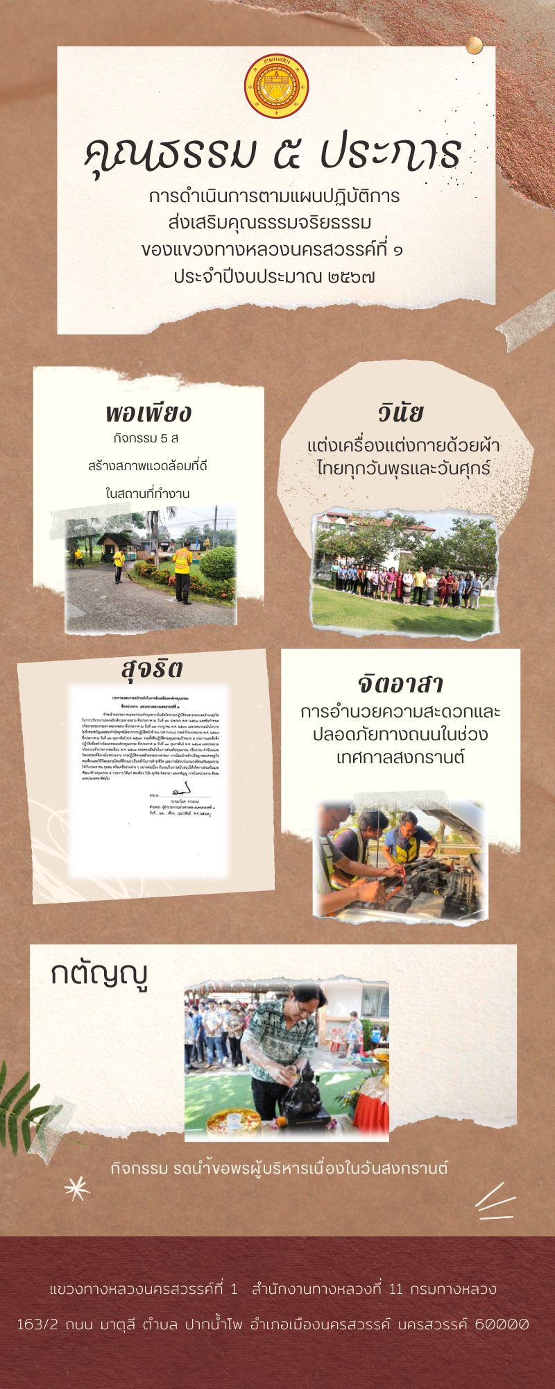 วิสัยทัศน์ : พัฒนางานบำรุงทางให้สะดวกและปลอดภัย ตอบสนองผู้ใช้บริการ