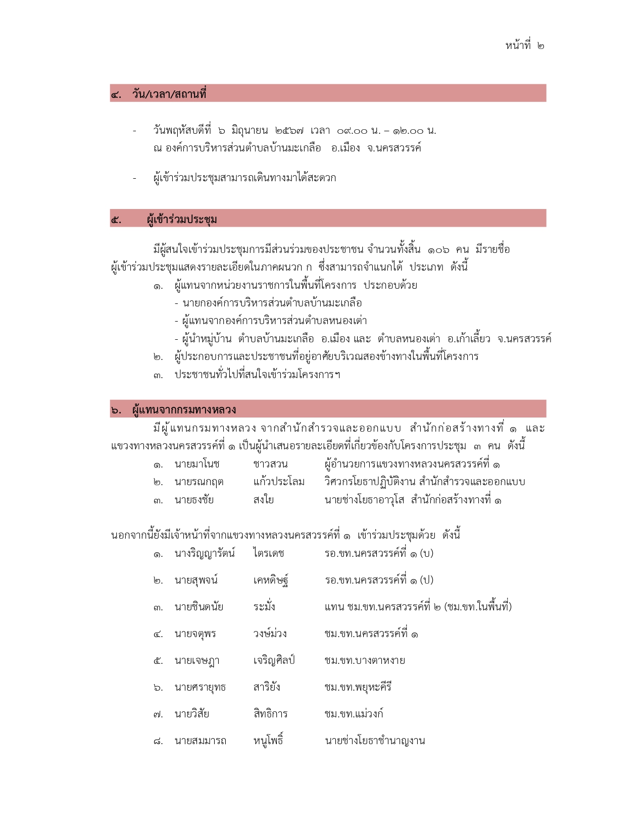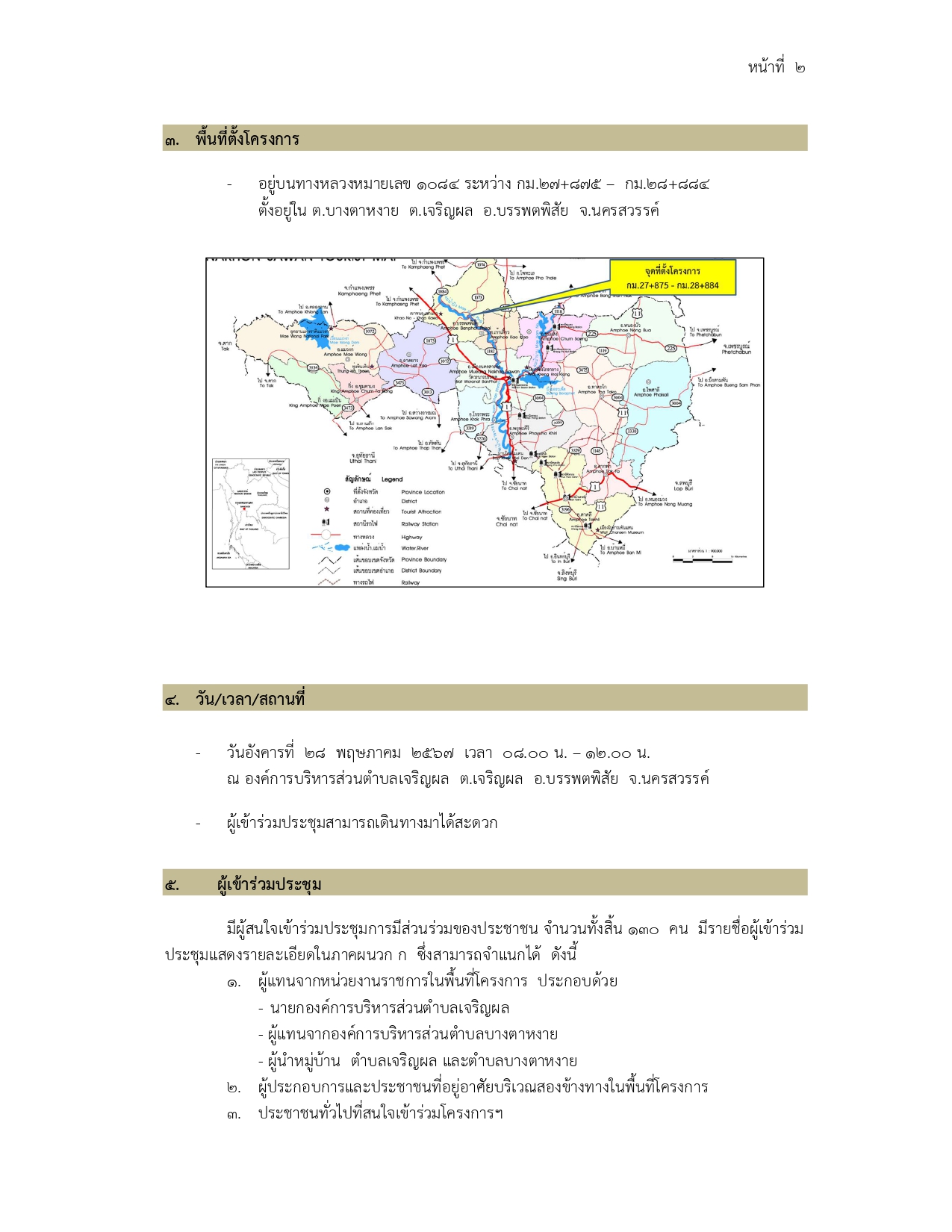 การประชุมการมีส่วนร่วมของประชาชน โครงการก่อสร้างทางหลวงหมายเลข 117 สาย นครสวรรค์ – พิจิตร ตอน นครสวรรค์ – คลองพลังด้านใต้ ตอน 2 ระหว่าง กม. 25+100 – กม. 40+300