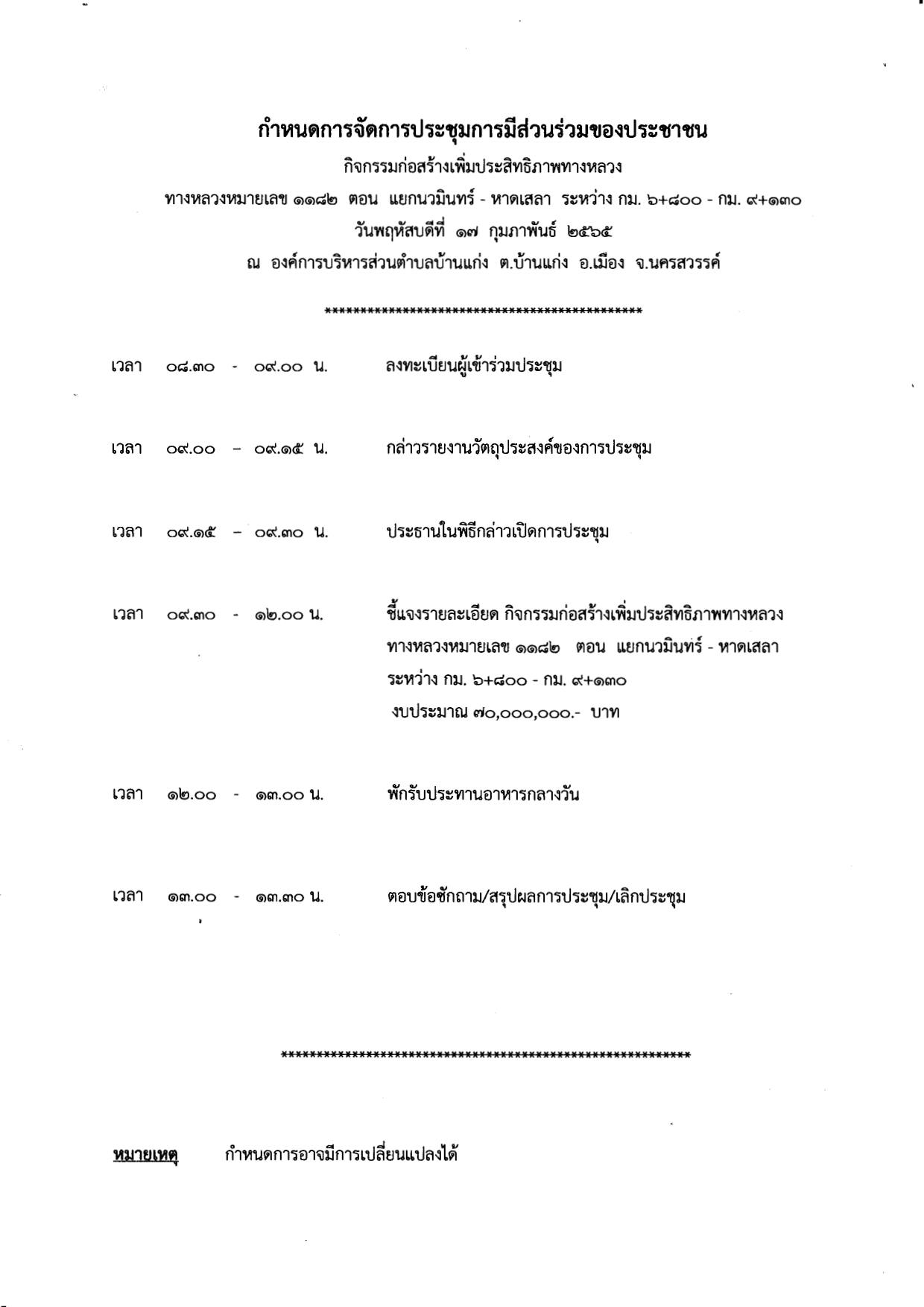 ประกาศแขวงทางหลวงนครสวรรค์ที่ 1 การประชุมการมีส่วนร่วมของประชาชน วันที่ 17 กุมภาพันธ์ 2565