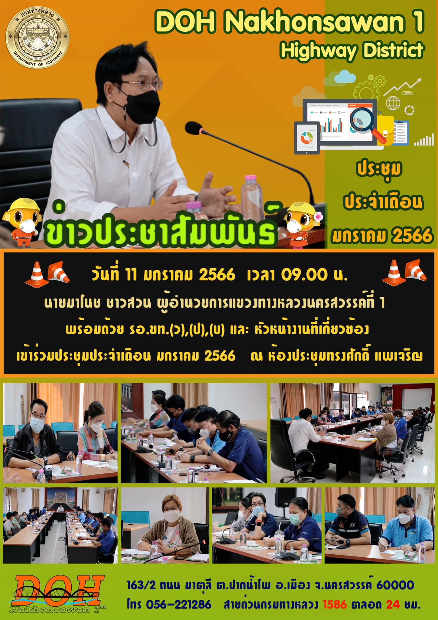 นายมาโนช ชาวสวน ผู้อำนวยการแขวงทางหลวงนครสวรรค์ที่ 1 พร้อมด้วย รอ.ขท.(ว),(ป),(บ) และ หัวหน้างานที่เกี่ยวข้อง เข้าร่วมประชุมประจำเดือน มกราคม 2566