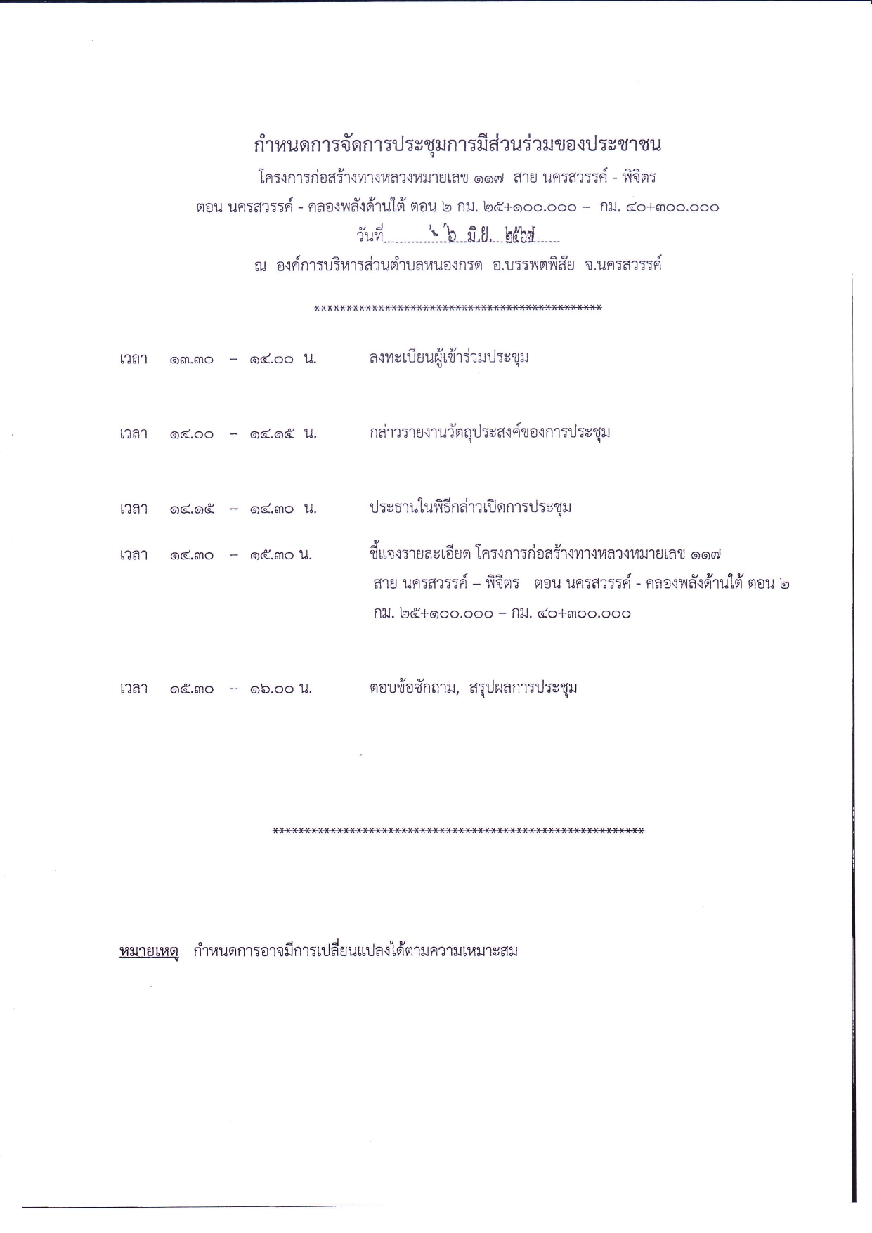 การประชุมการมีส่วนร่วมของประชาชน โครงการก่อสร้างทางหลวงหมายเลข 117 สาย นครสวรรค์ – พิจิตร ตอน นครสวรรค์ – คลองพลังด้านใต้ ตอน 2 ระหว่าง กม. 25+100 – กม. 40+300