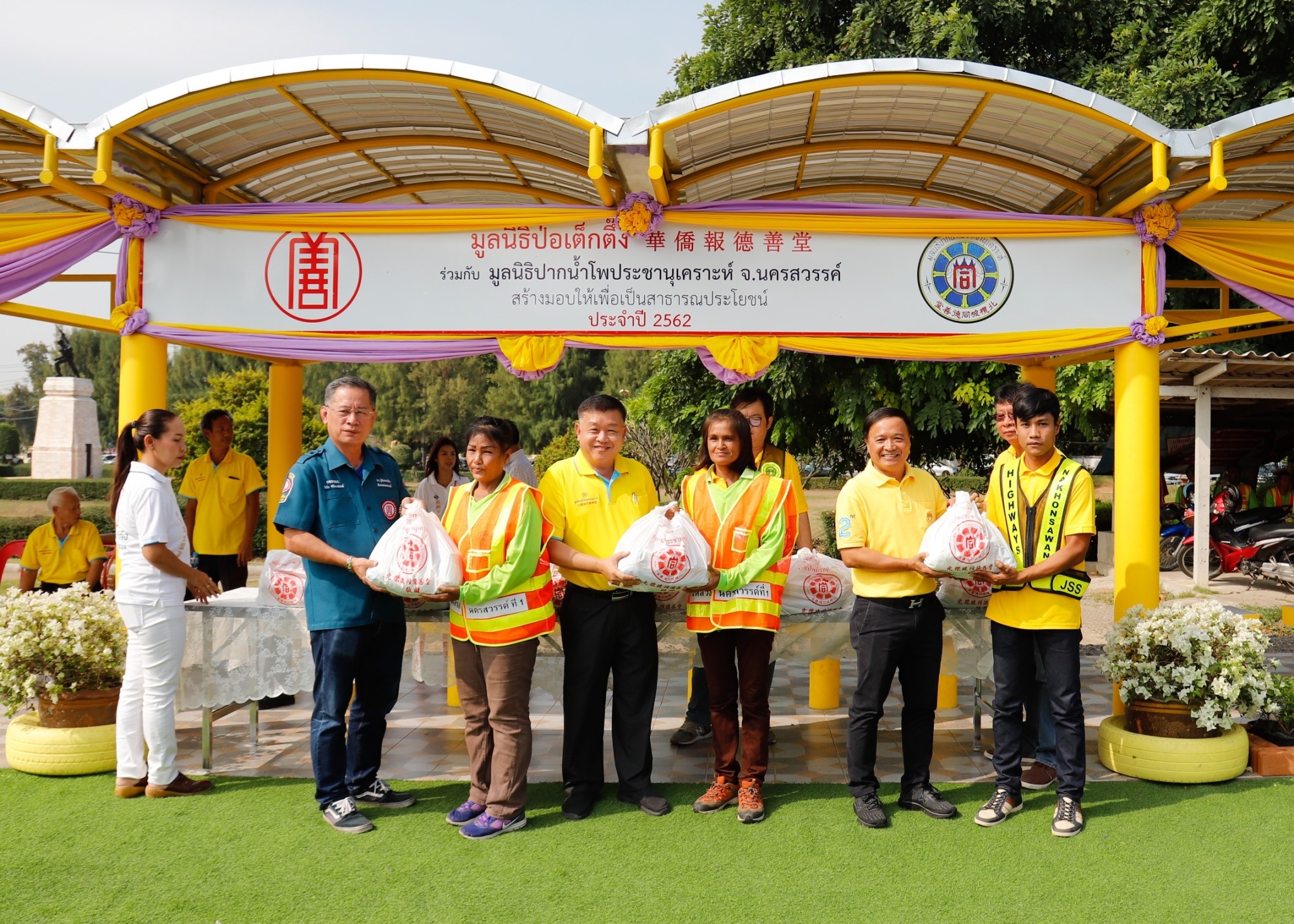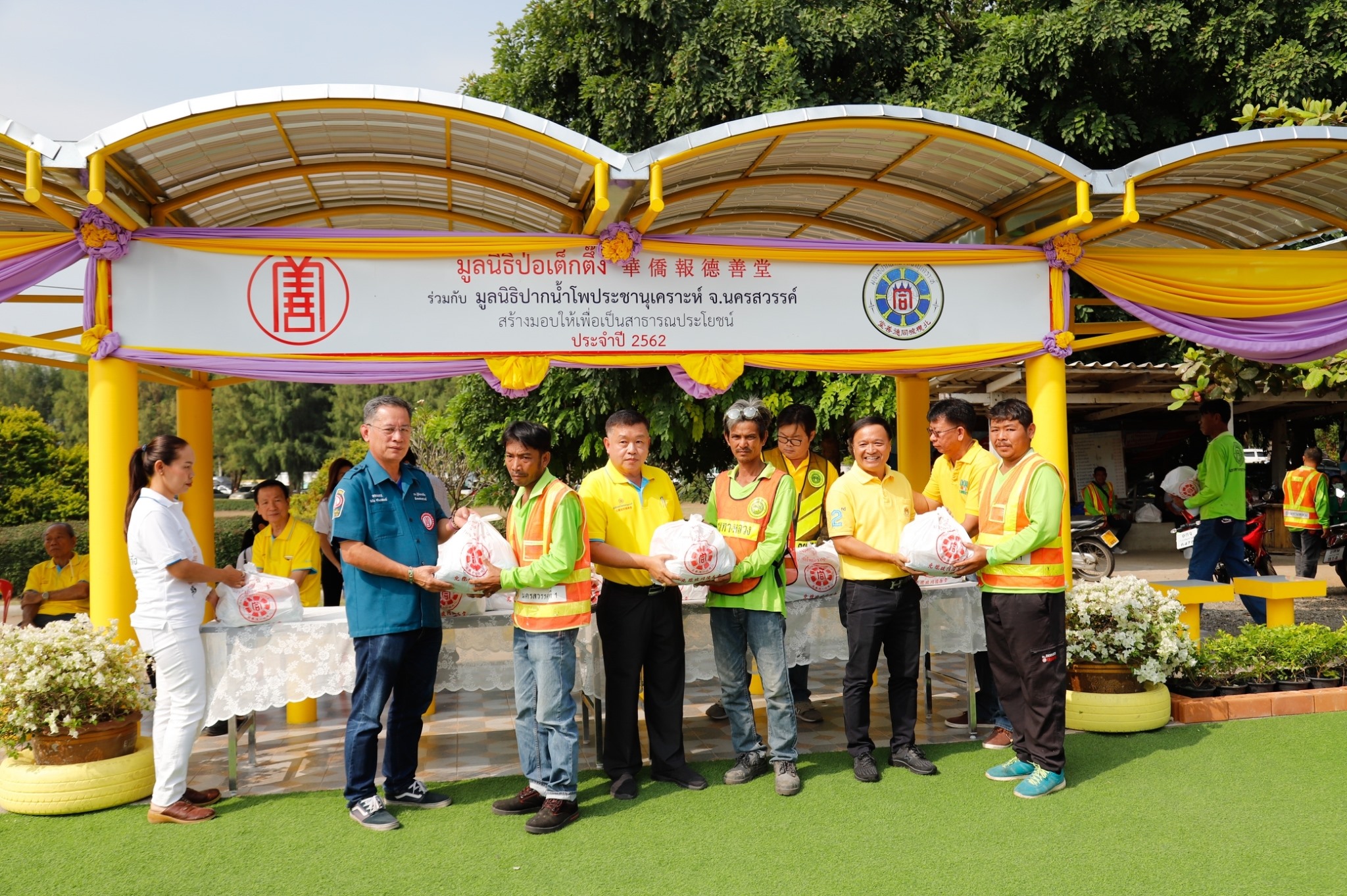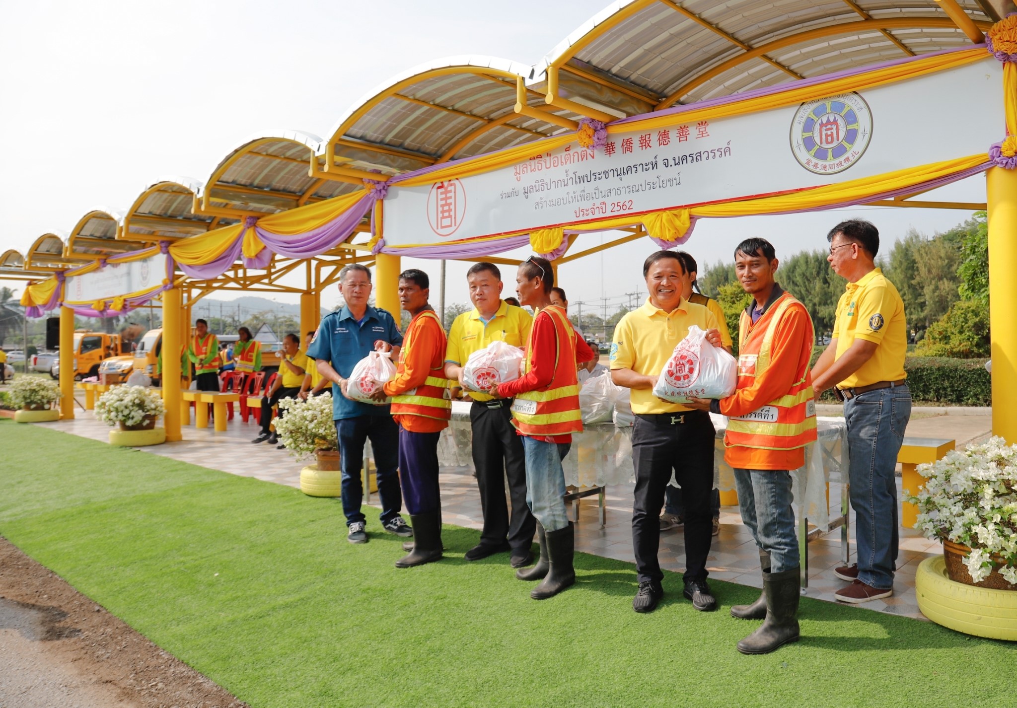 นายวุฒิชัย อภิวัฒนกุลชัย ผู้จัดการมูลนิธิป่อเต็กตึ๊ง ได้มอบศาลาที่พักผู้โดยสารรถประจำทาง จำนวน 4 หลัง