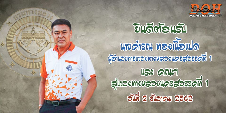 แขวงทางหลวงนครสวรรค์ที่ 1 พร้อมข้าราชการเจ้าหน้าที่แขวงฯ ได้ให้การต้อนรับนายคำรณ ทองเนื้อแปด ในโอกาสมาดำรงตำแหน่งผู้อำนวยการแขวงทางหลวงนครสวรรค์ที่ 1