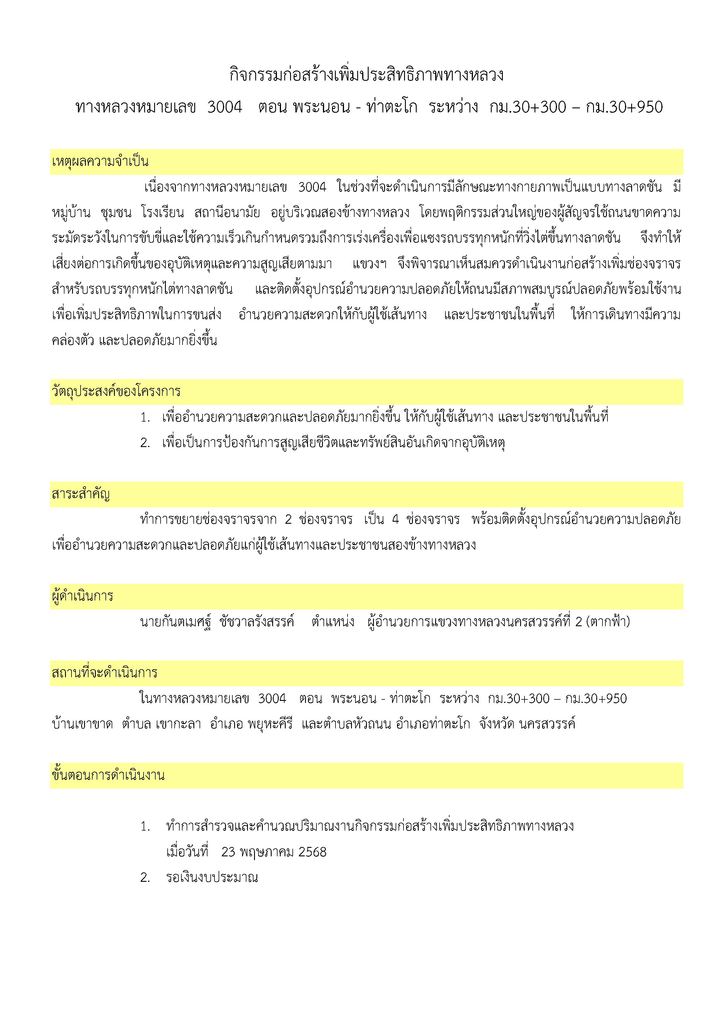 ทางหลวงหมายเลข 3004 ตอน พระนอน - ท่าตะโก ระหว่าง กม.30+300 – กม.30+950
