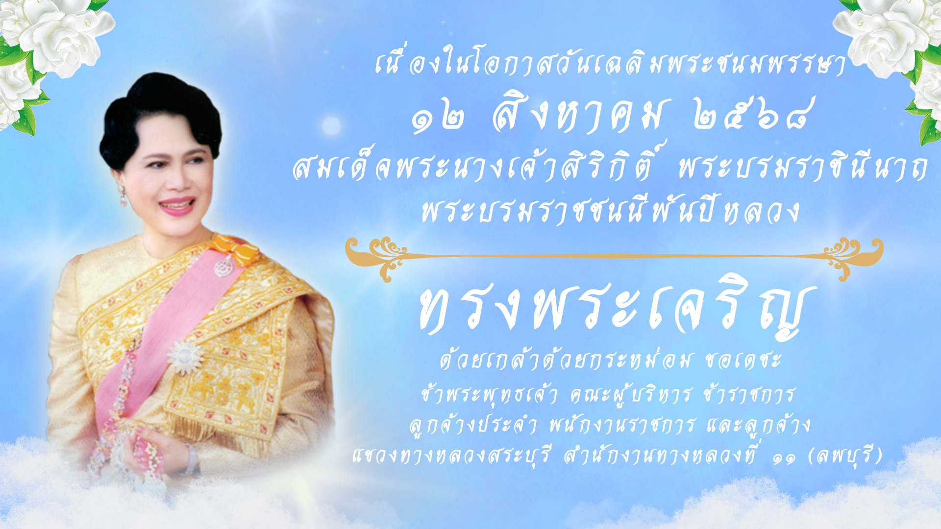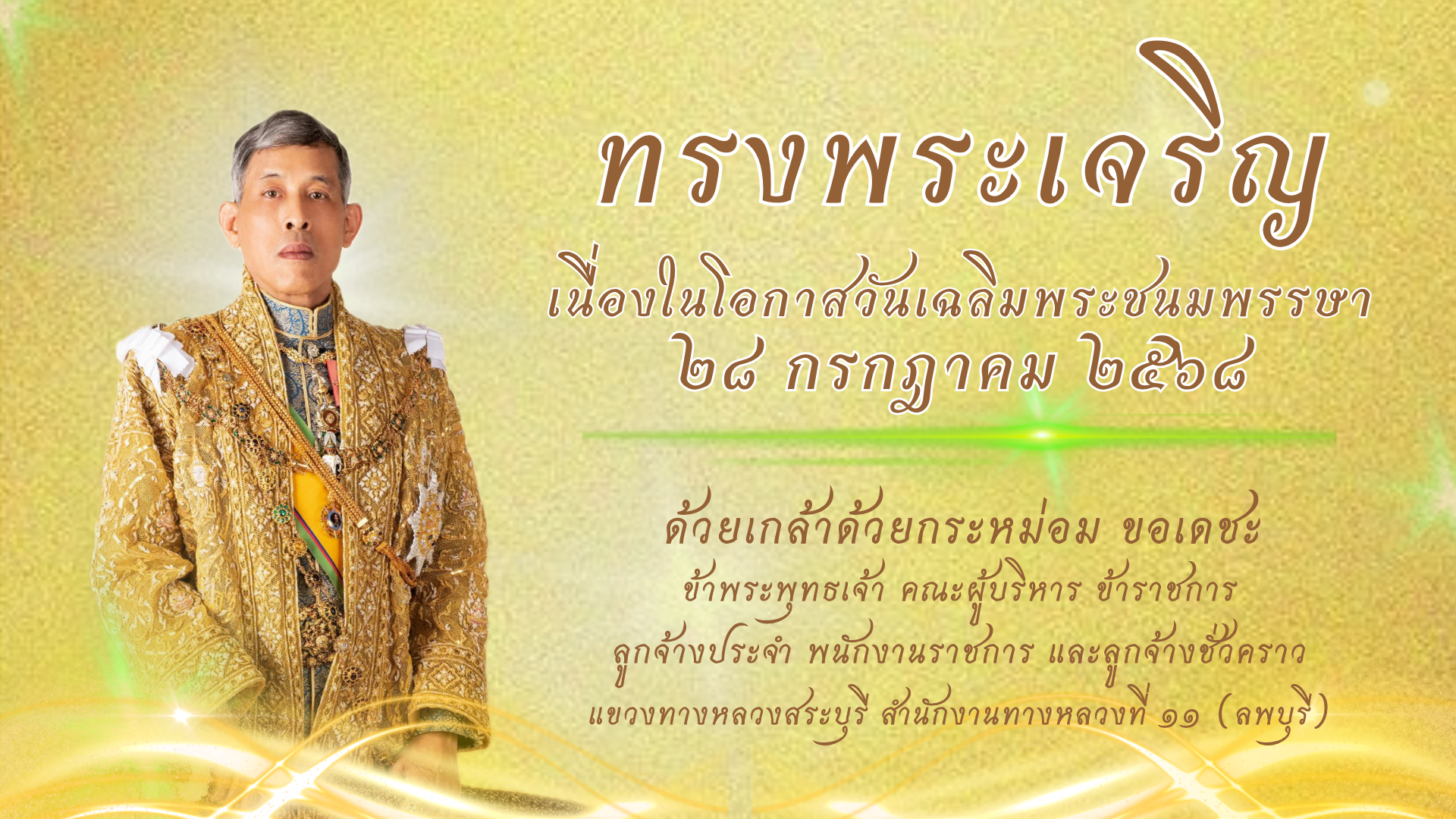 แขวงทางหลวงสระบุรี ขอเชิญชวนทุกท่านร่วมลงนามถวายพระพรชัยมงคล พระบาทสมเด็จพระเจ้าอยู่หัว เนื่องในโอกาสวันเฉลิมพระชนมพรรษา ๒๘ กรกฎาคม ๒๕๖๘ และของทุกปี ผ่านระบบออนไลน์ สามารถร่วมลงนามถวายพระพร