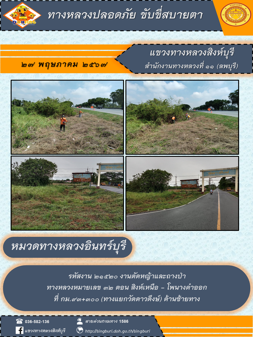 ผลการปฏิบัติงาน ตั้งแต่วันที่ 20 - 24 พฤษภาคม 2567 แขวงทางหลวงสิงห์บุรี