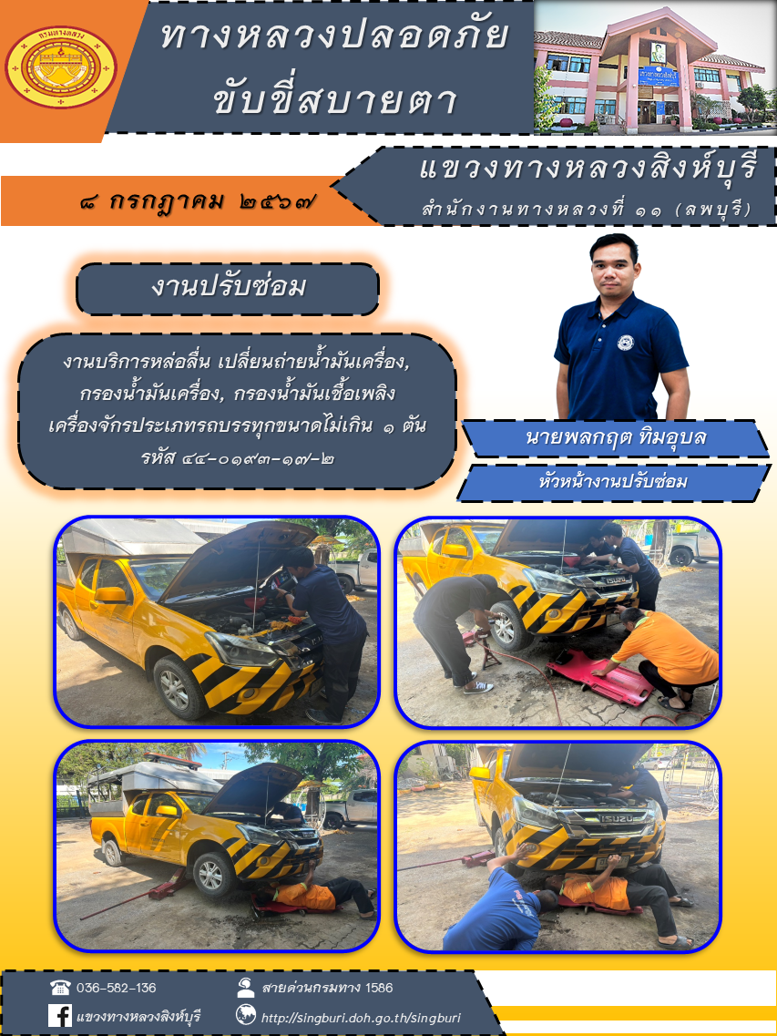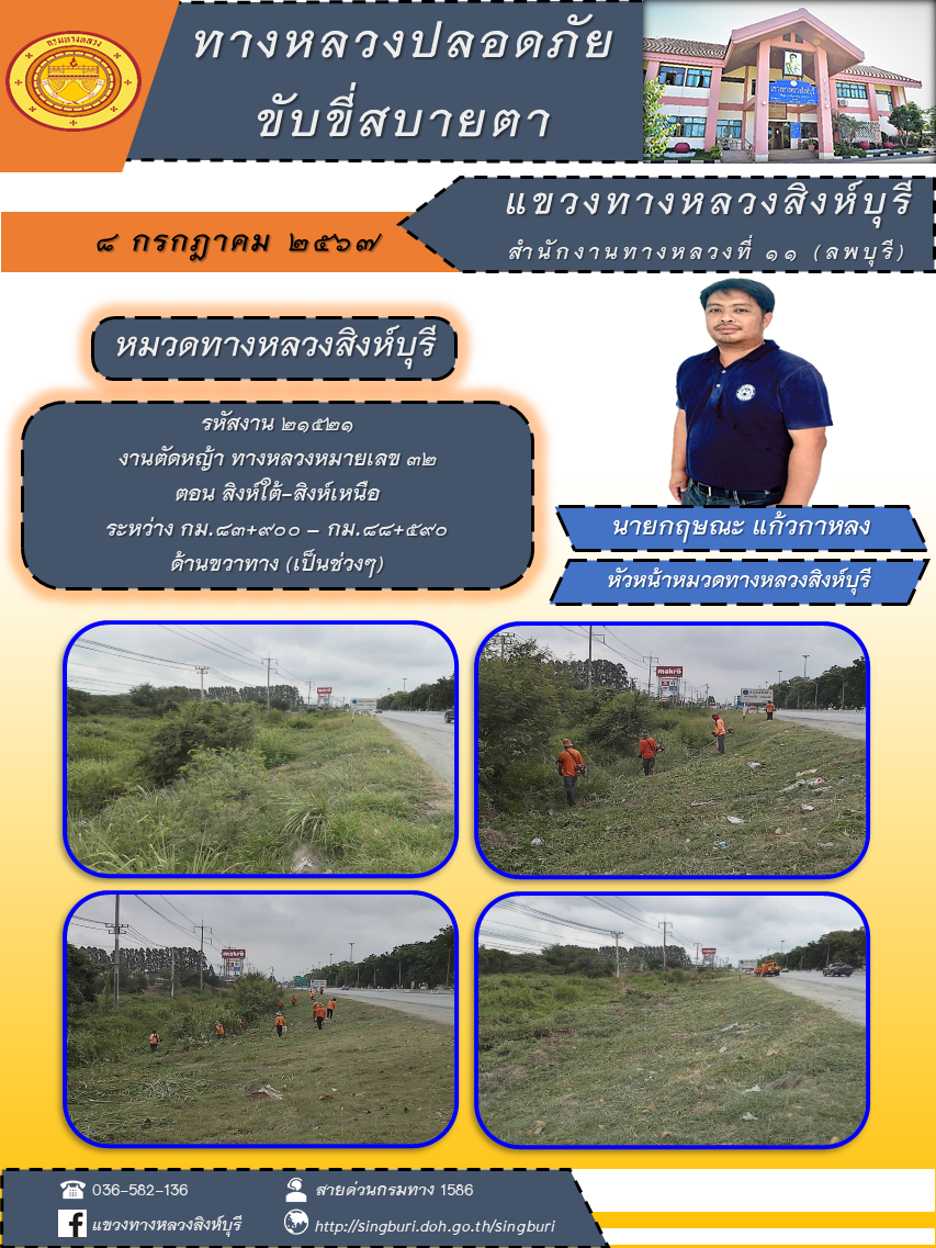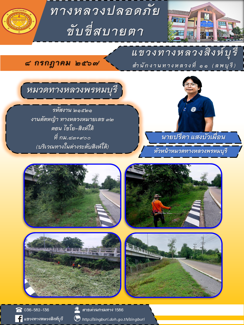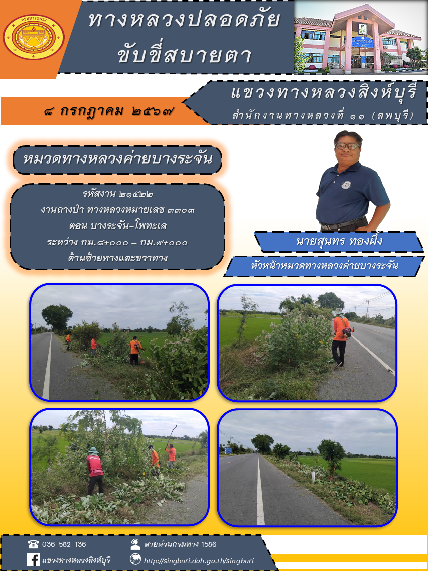 ข้อมูลภาพกิจกรรม : ประชาสัมพันธ์ วันที่ 10 กรกฎาคม 2567 ผลการปฏิบัติงาน ตั้งแต่วันที่ 1 - 5 กรกฎาคม 2567 แขวงทางหลวงสิงห์บุรี