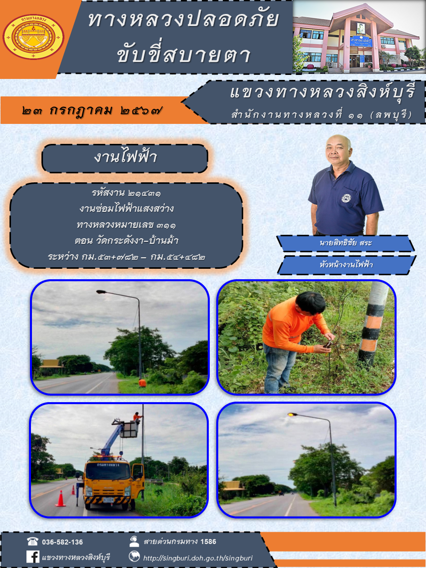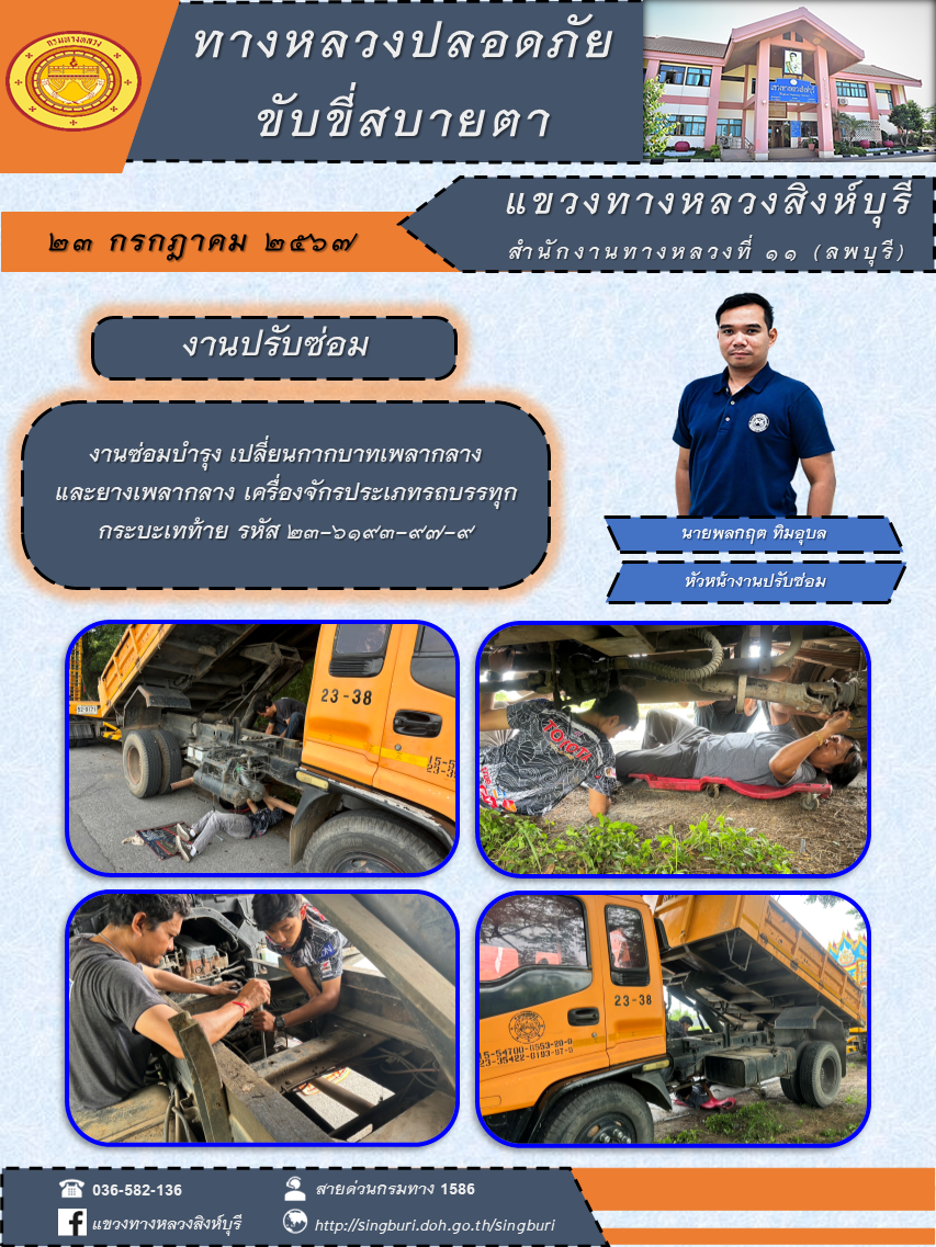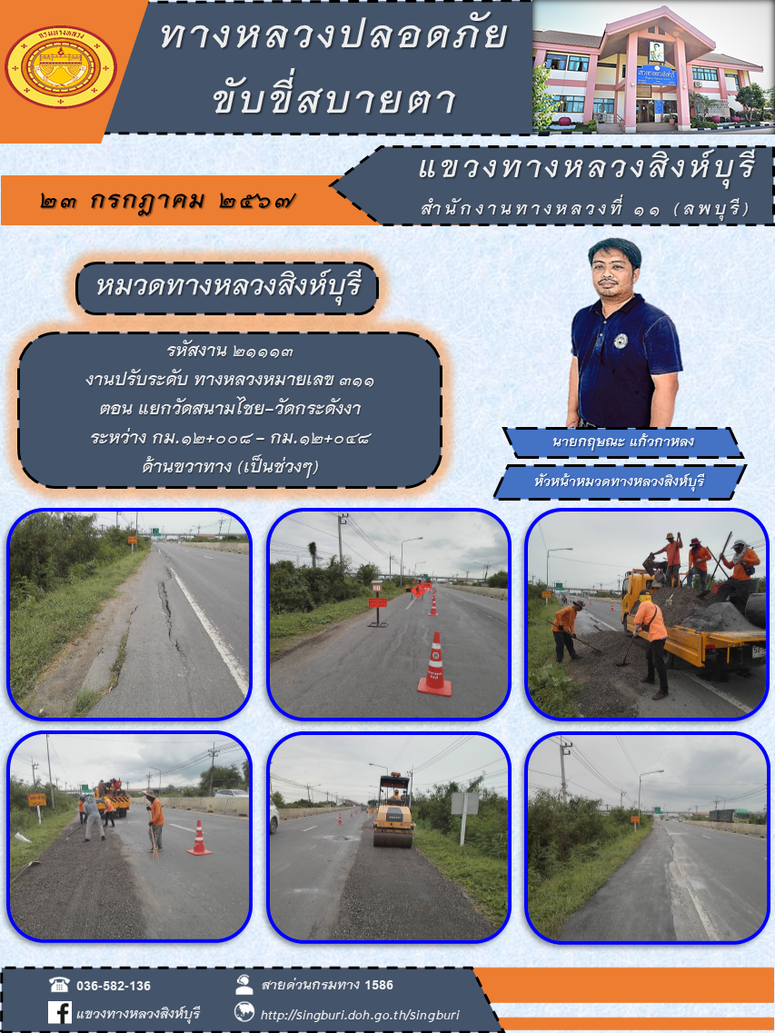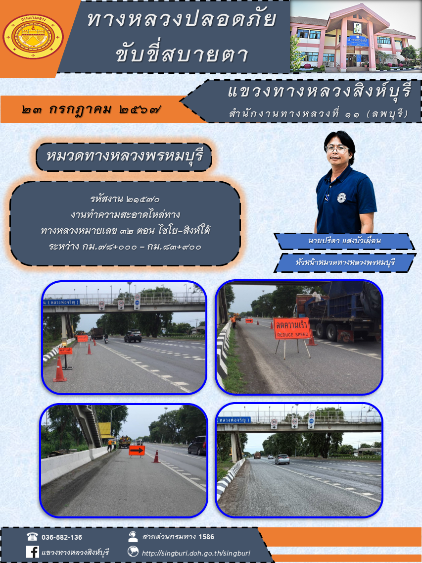 ประชาสัมพันธ์ วันที่ 25 กรกฎาคม 2567 ผลการปฏิบัติงาน ตั้งแต่วันที่ 15 - 19 กรกฎาคม 2567 แขวงทางหลวงสิงห์บุรี