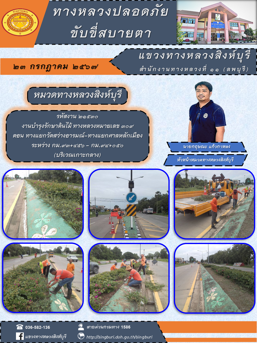 ผลการปฏิบัติงาน ตั้งแต่วันที่ 15 - 19 กรกฎาคม 2567 แขวงทางหลวงสิงห์บุรี