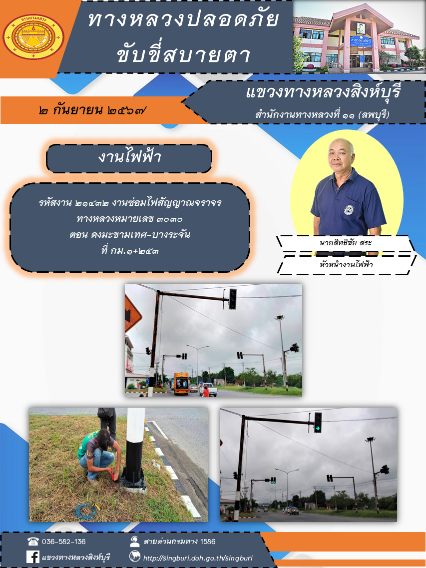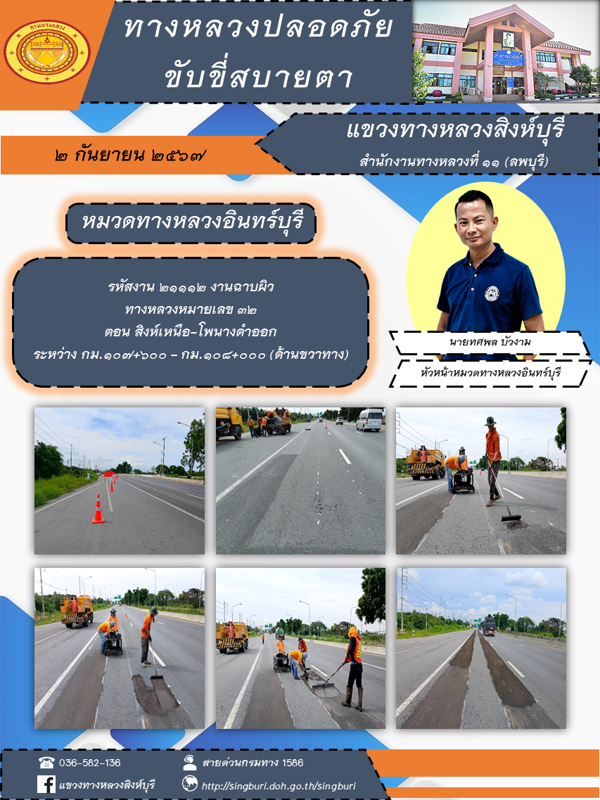 ??ประชาสัมพันธ์ วันจันทร์ที่ 2 กันยายน 2567 ผลการปฏิบัติงาน ตั้งแต่วันที่ 26-30 สิงหาคม 2567 แขวงทางหลวงสิงห์บุรี