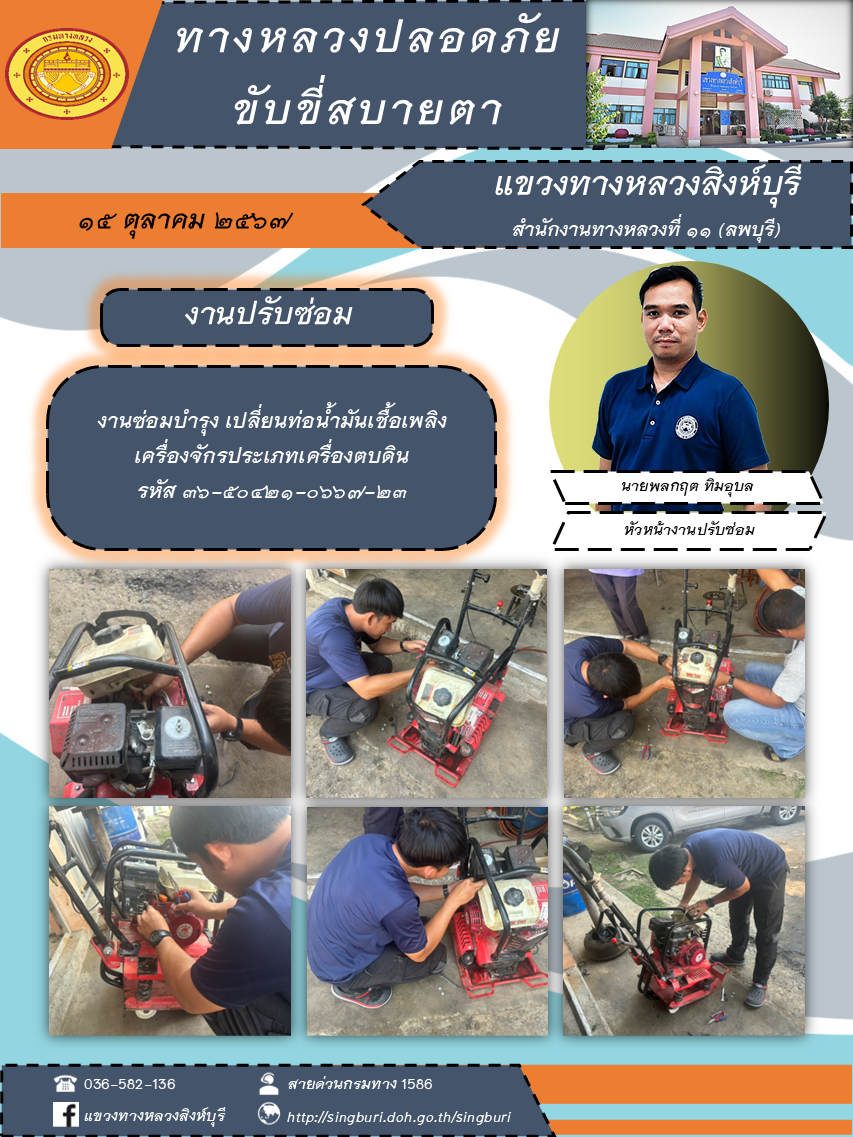 ผลการปฏิบัติงาน ตั้งแต่วันที่ 7 - 11 ตุลาคม 2567 แขวงทางหลวงสิงห์บุรี