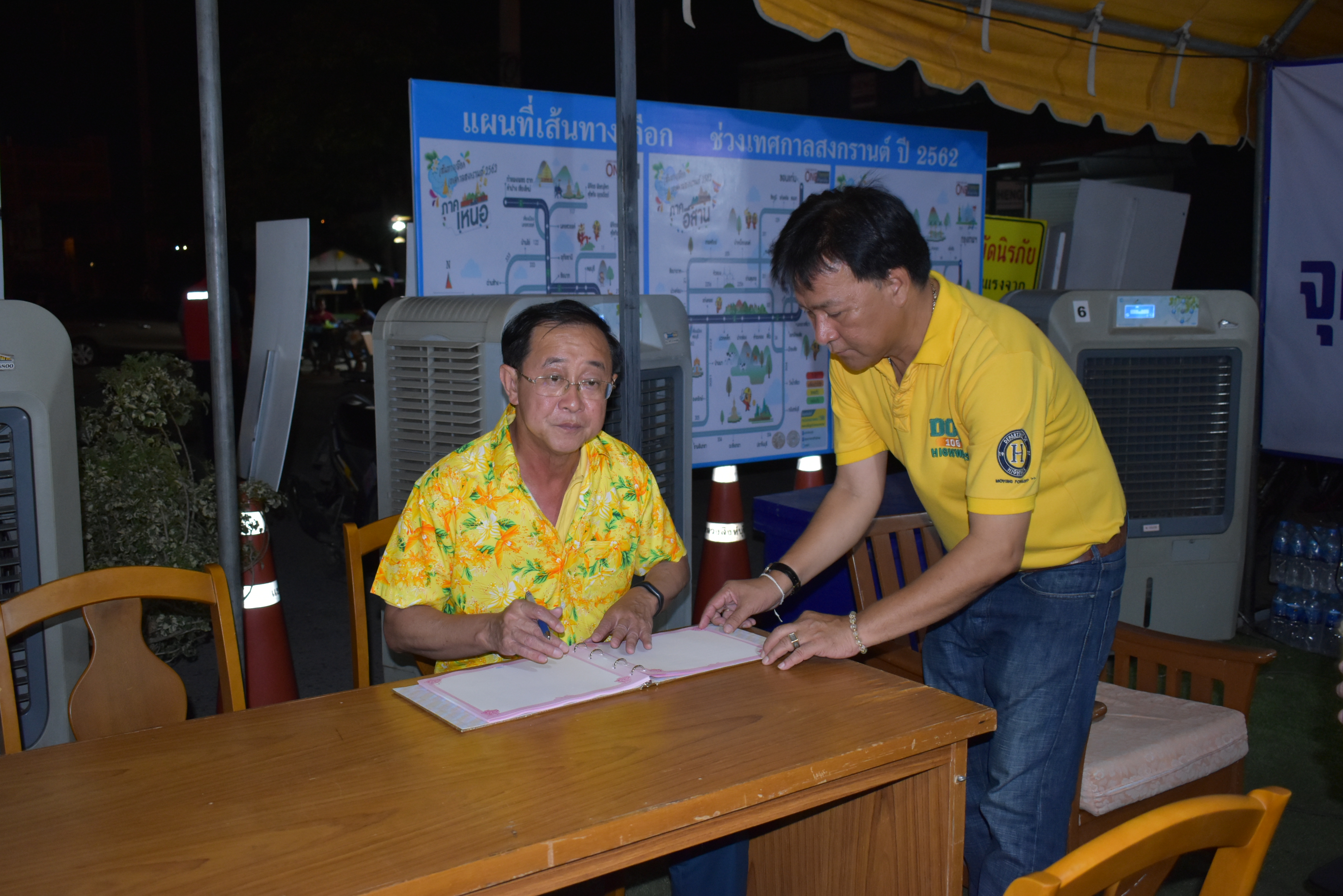 ณ เต็นท์บริการประชาชน บนทางหลวงหมายเลข 32 ที่ กม.103+200 (ฝั่งขาเข้า กทม.)